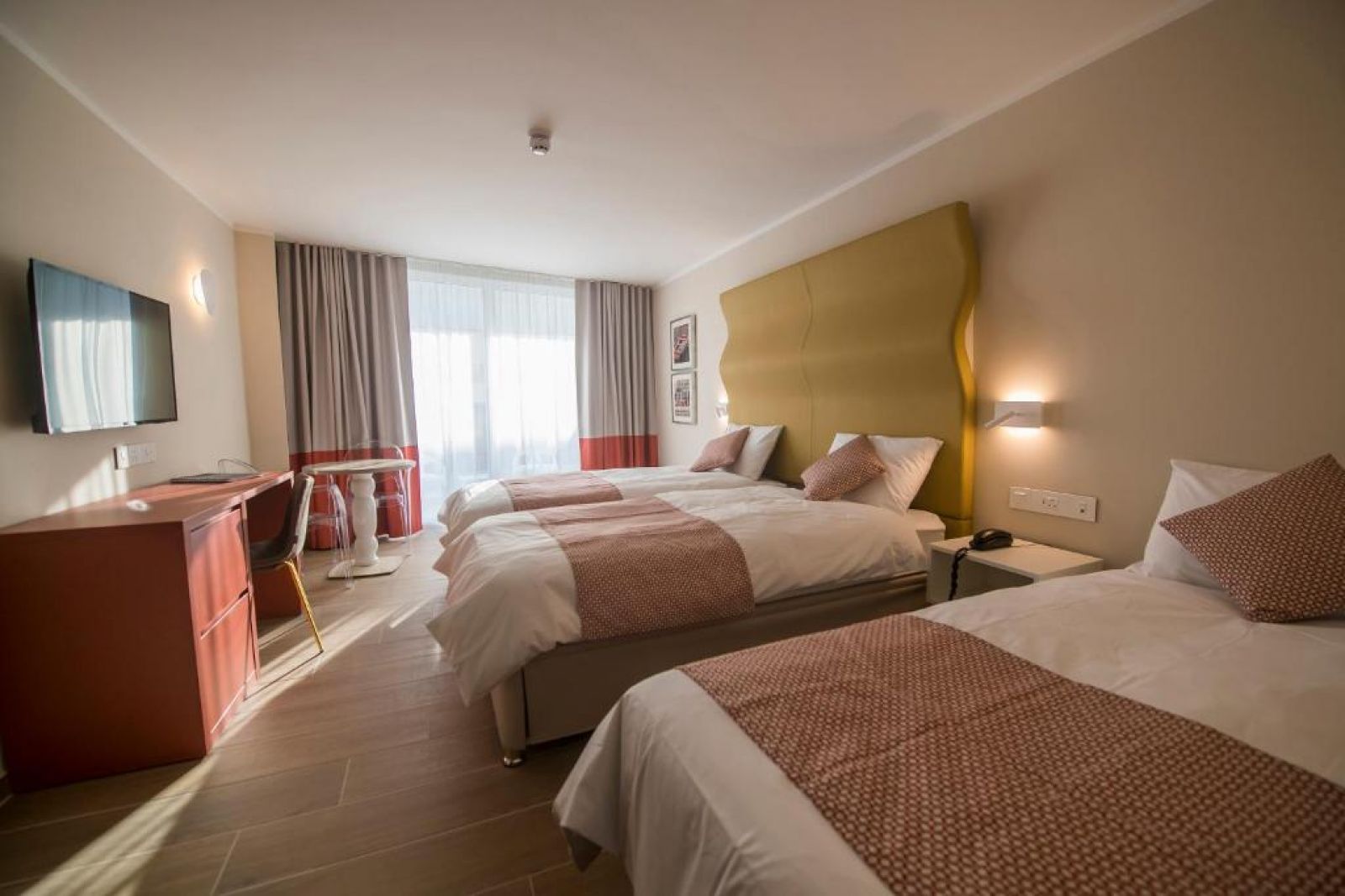 Всички стаи разполагат с голям балкон с външна маса и столове. Удобно двойно легло с дизайнерска табла. Стаите са с климатик, имат удобства за приготвяне на чай/кафе, сешоар, минибар, сейф, телевизор, БЕЗПЛАТЕН Wi-Fi, телефон, контакти за самобръсначка. Ютия/дъска за гладене (по заявка).В някои от стаите има допълнителна маса и фотьойли за още по-голям комфорт и удобство на гостите. Всяка стая има баня с душ.