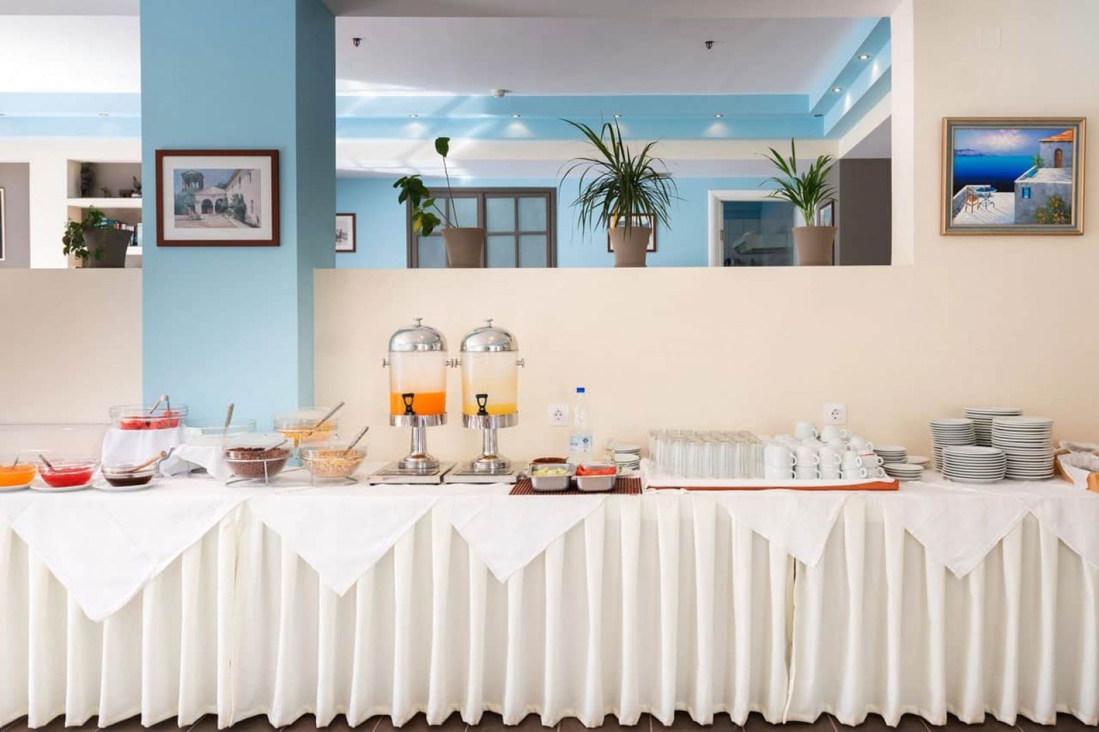 Менюто, което се предлага е а-ла-карт и бюфет и включва Гръцка и Европейска кухня.
