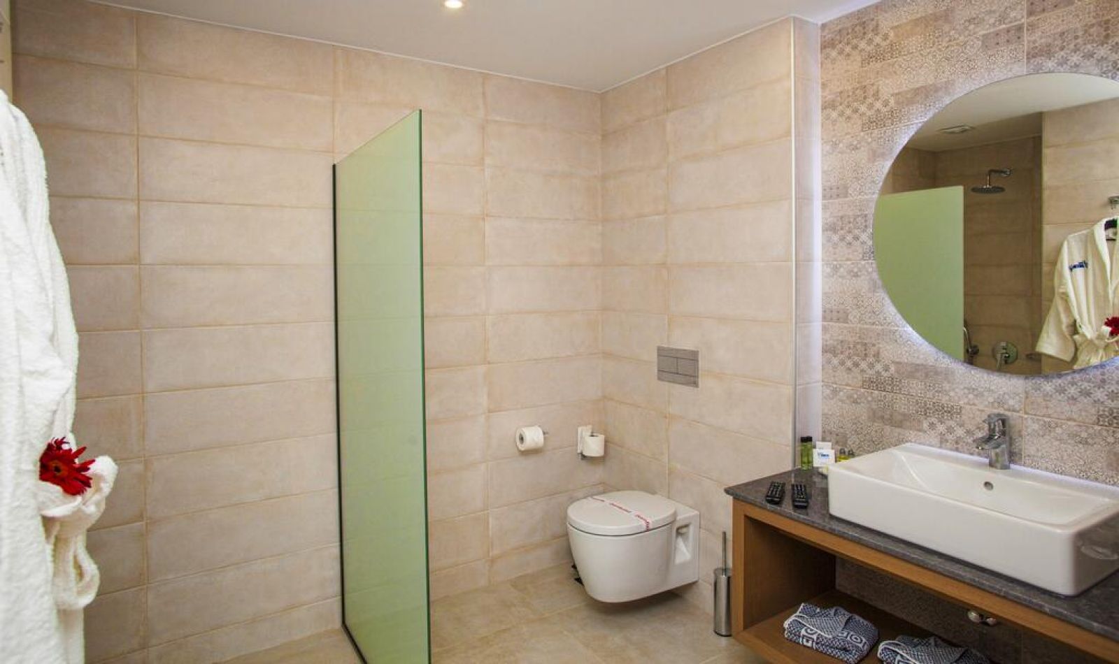 Стаите са с изглед към басейна или градините, а на разположение има и стаи с изглед към морето.