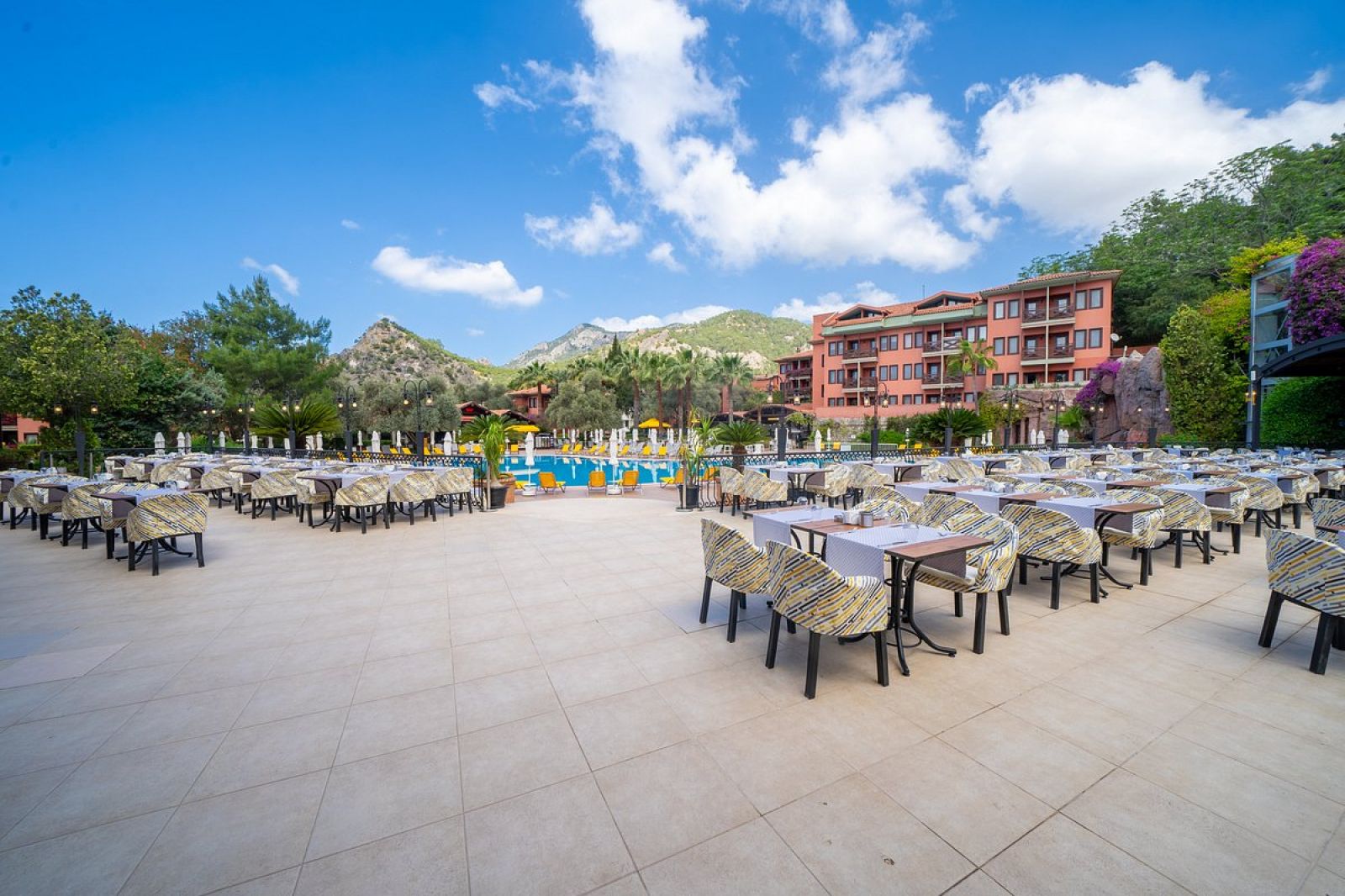 Хотелът разполага с 206 стаи, външен басейн, релакс басейн, детски басейн, вътрешен басейн, основен ресторанта, 3 бара, дискотека, билярд (срещу депозит), дартс, тенис на маса (срещу депозит), тенис на корт (срещу депозит), мини клуб (4-12), анимация. Услуги предлагани в хотела безплатно: турска баня, сауна, фитнес, дискотека. Услуги предлагани в хотела срещу заплащане: масаж, спа център, фризьор, парасайлинг, детегледачка, пералня, осветление за тенис корт, лекар (на повикване). ПЛАЖ: Собствен – пясъчен, на 1 км. от хотела, безплатен шатъл до плажа няколко пъти на ден. Чадъри, шезлонги, матраци на плажа и при басейна – безплатно.