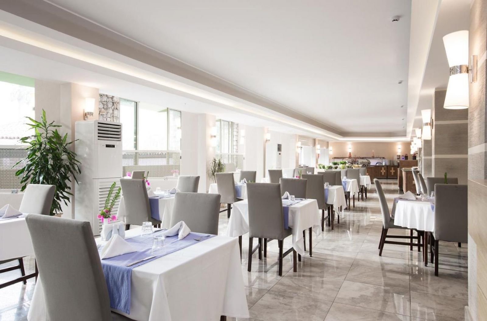 Основен ресторант, 2 а-ла-карт ресторанта (срещу заплащане), 3 бара, 1 открит басейн (600м²) , амфитеатър, магазини, СПА център, 5 конферентни зали, паркинг. Безплатни услуги: Сауна, турска баня, джакузи, парна баня, фитнес, аеробика, зумба, пилатес, дартс, тай-чи, бочиа, плажен волейбол, тенис корт, тенис на маса, анимация, музика на живо, караоке, тематични партита, WI-FI интернет (на лоби). Платени услуги: СПА център, масаж, пилинг, фризьор, магазини, химическо чистене, оборудване за тенис корт, осветление на тенис корта, безмоторни и моторни водни спортове. Плаж: Собствен, пясъчен удостоен със сертификат "Син флаг" .Чадъри и шезлонги на плажа и при басейна – безплатно, плажни кърпи - безплатно.