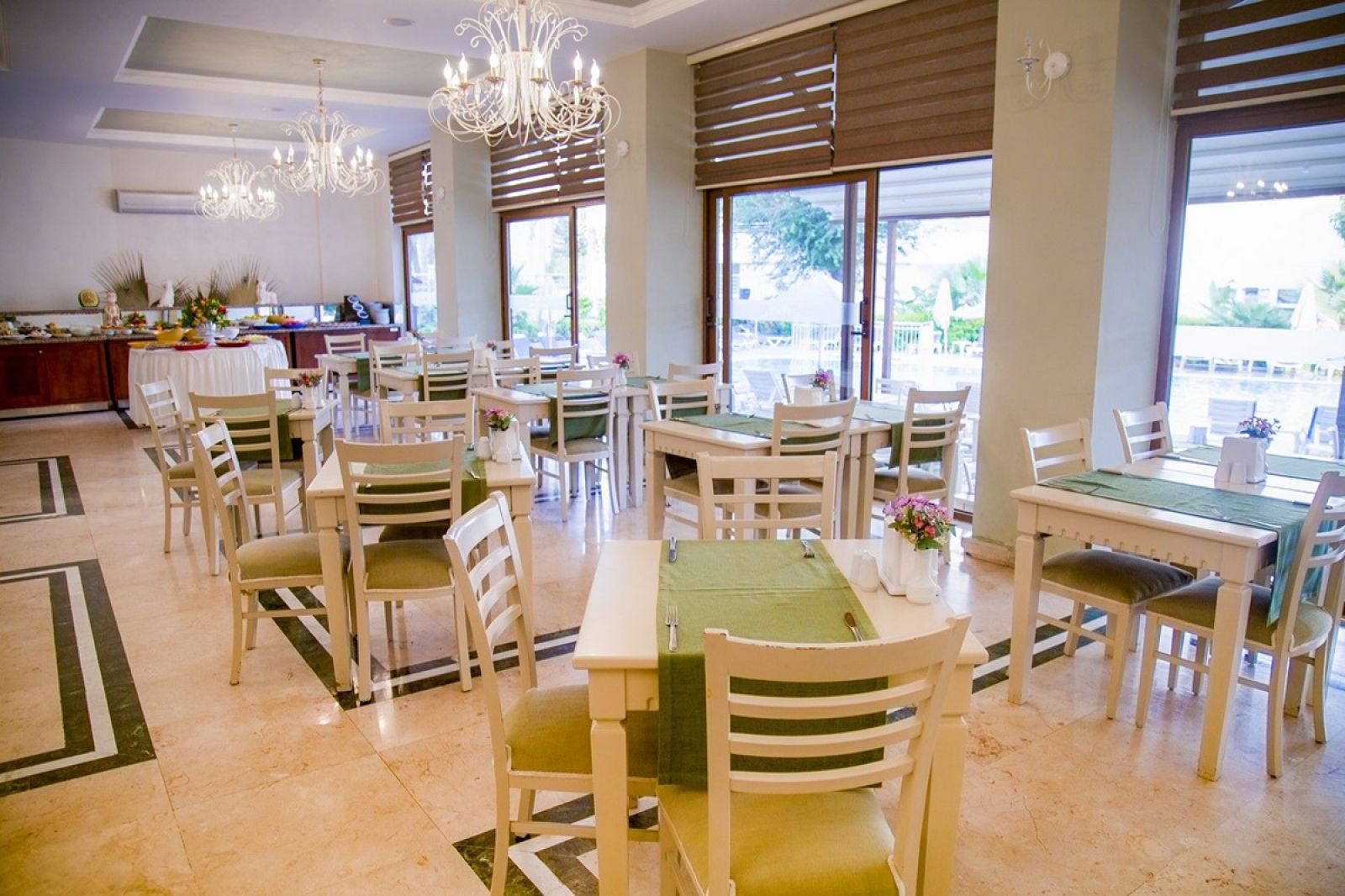 Открит и закрит ресторант, бар на басейна, открит басейн. Безплатни услуги: Басейн, интернет (в лоби), сауна, фитнес. Платени услуги: Масажи, такси, рент а кар, сейф (в стаите), вносни алкохолни напитки, билярд. Плаж: Градски, пясъчен – чадъри и шезлонги на плажа – срещу заплащане, а при басейна – безплатно.