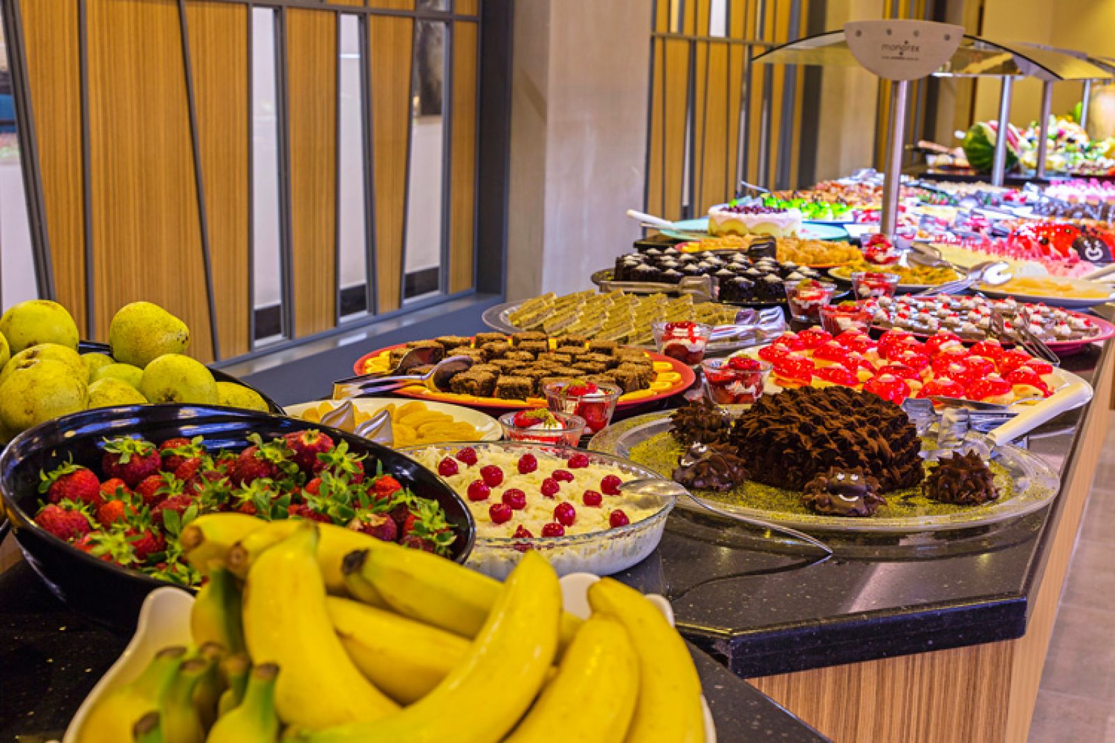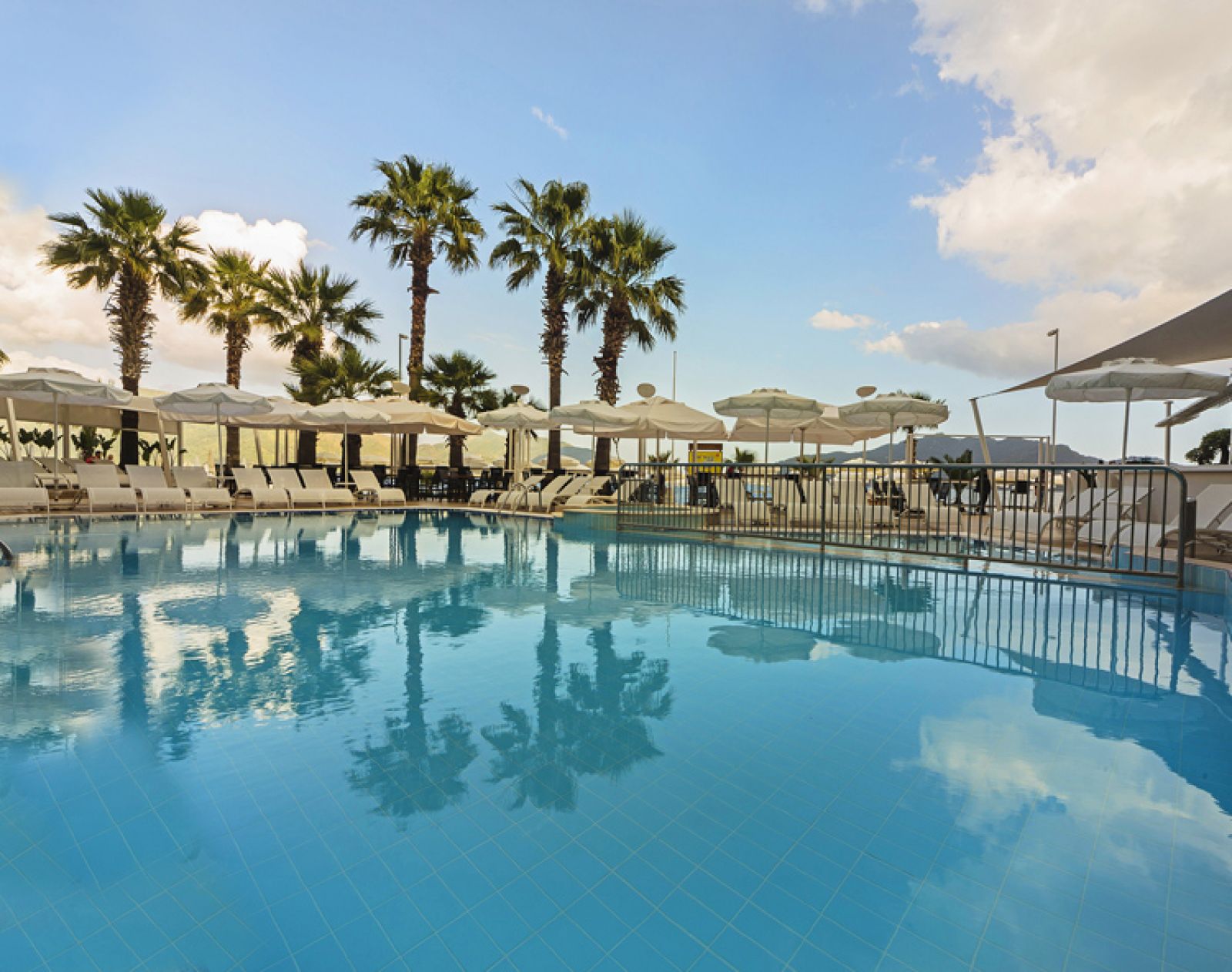 Основен ресторант, 3 бара, открит и закрит басейн, конферентна зала. Безплатни услуги – Сауна, парна баня, фитнес. Платени услуги: масаж, сейф, пералня, химическо чистене, фризьорски салон, водни спортове, WI-FI интернет, Уелнес център и СПА център. Плаж – Собствен, пясъчен, удостоен със сертификат "Син флаг". Чадъри и шезлонги на плажа и при басейна – безплатни.