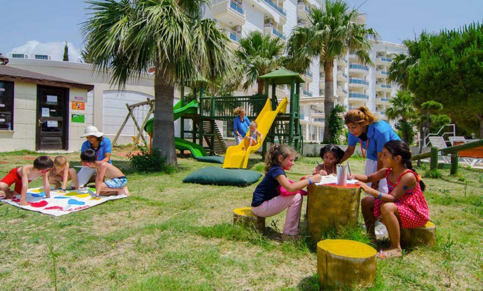 За децата: Детски басейн, водни пързалки, детска площадка, мини клуб.