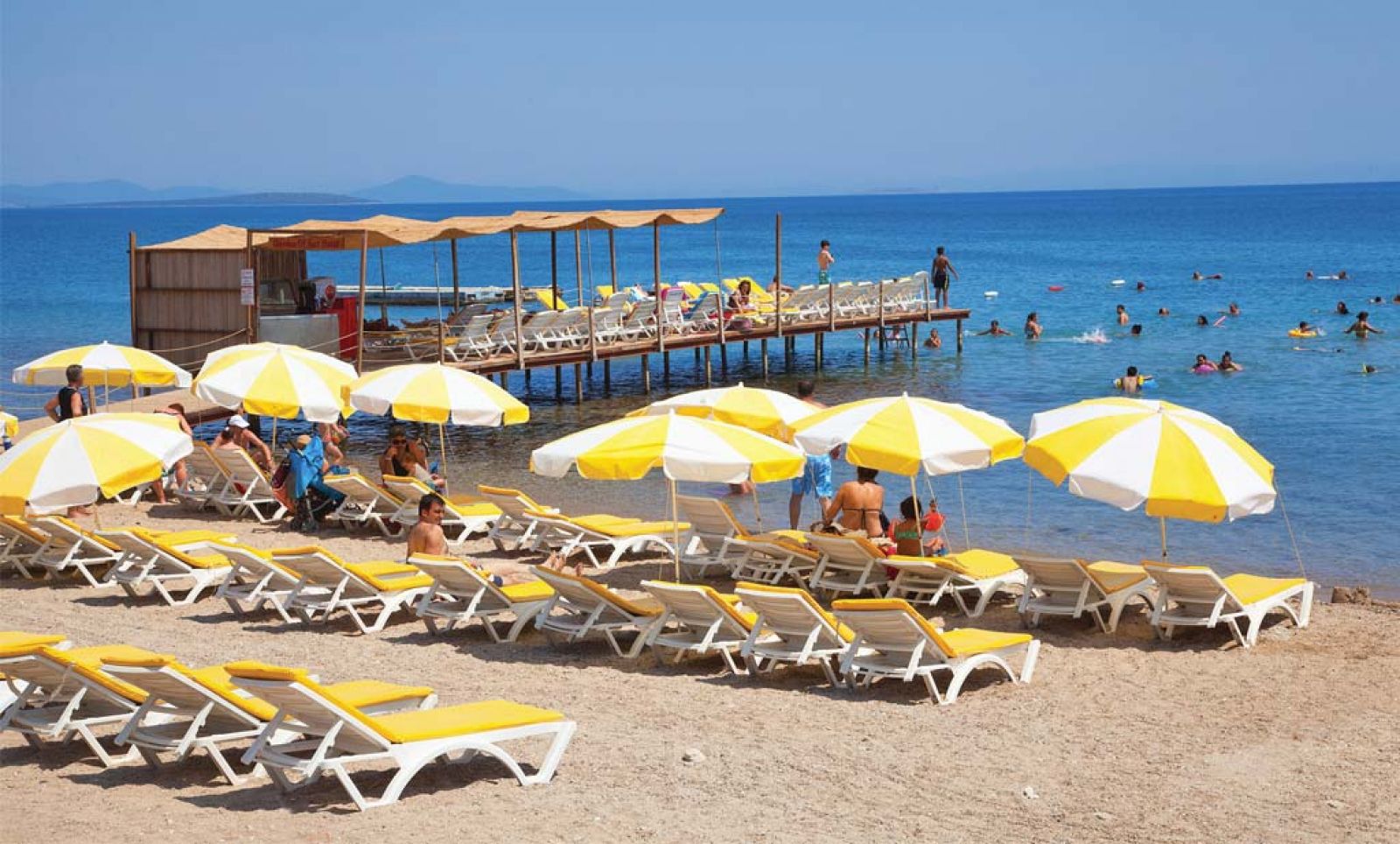Собствен, пясъчен на 400 м от хотела. Чадъри, шезлонги и плажни кърпи на плажа и при басейна – безплатно. Два пъти дневно функционира безплатен шатъл от и до плажа.