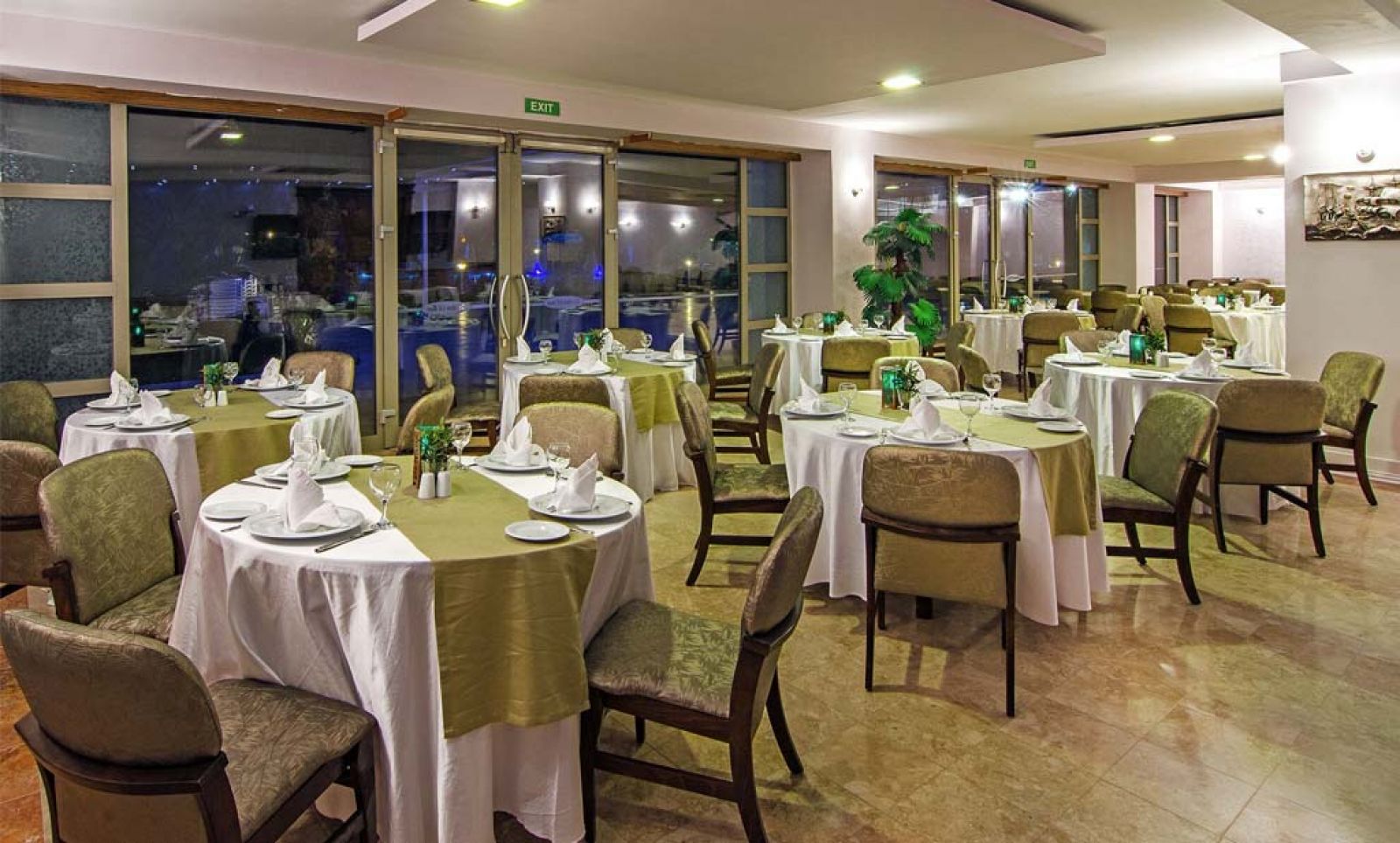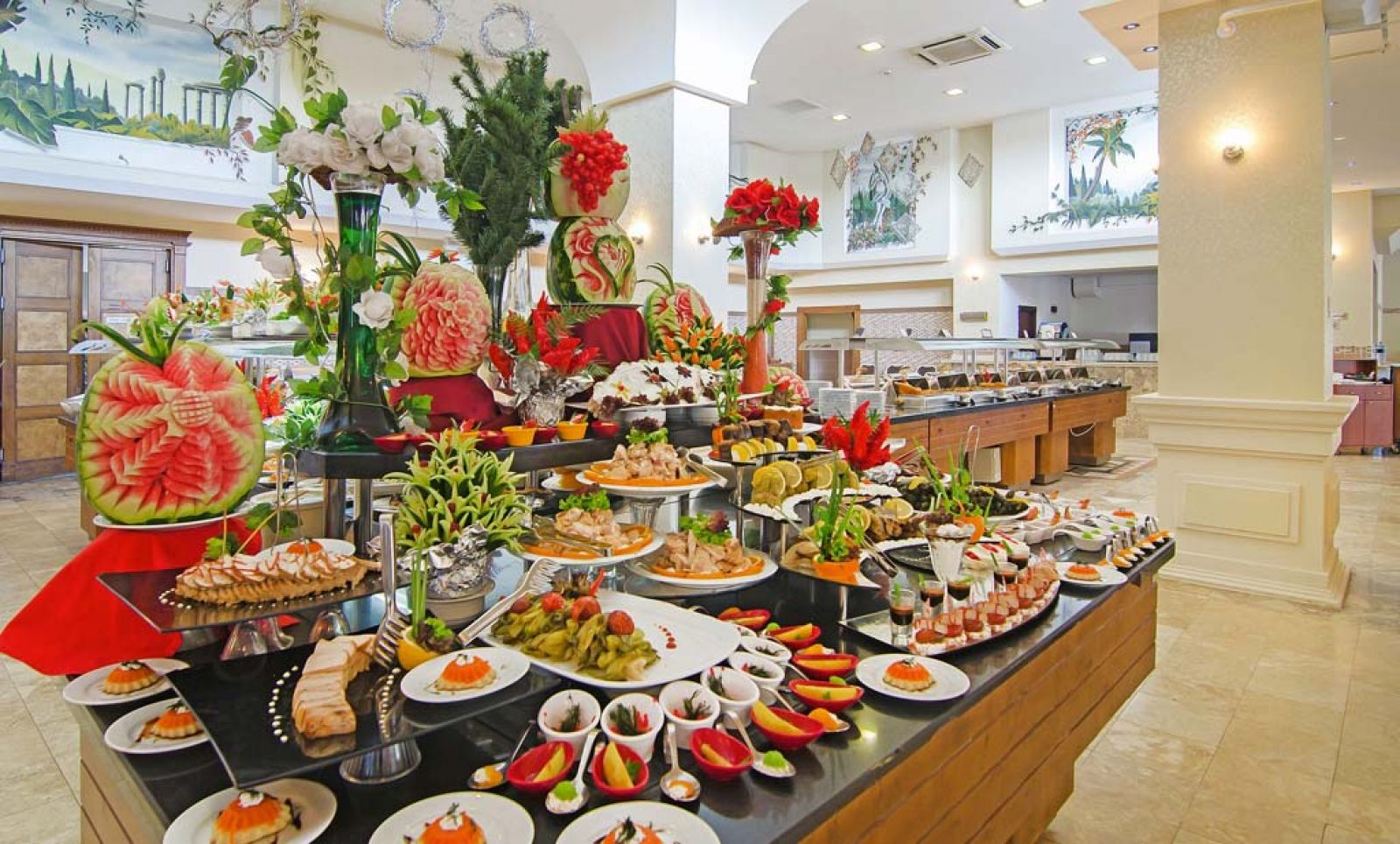 Основен ресторант, 2 а-ла-карт ресторанта, 4 бара, открит басейн, закрит басейн, водни пързалки, СПА център, конферентна зала, магазини, дискотека, паркинг.