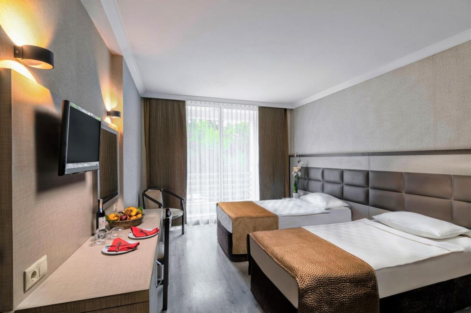 Хотела разполага с общо 282 стаи. Всяка от тях разполага с: телевизор, баня и тоалетна, централна климатизация, сейф (платено). Почистване на стаите- всеки ден. Смяна на спално бельо и хавлии- 3 пъти в седмицата.