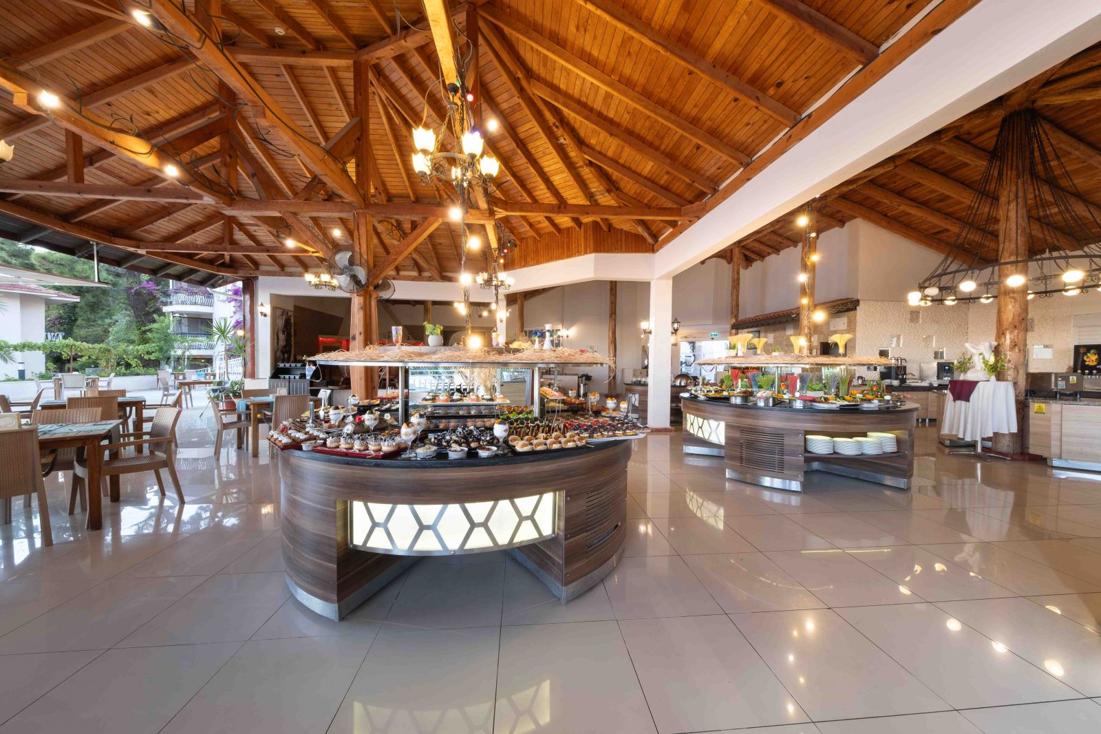 Основен ресторант, 1 а- ла- карт ресторант, 3 бара, 2 големи басейна, 2 детски басейна (единия с водна пързалка), детска площадка , детски клуб , анимация.