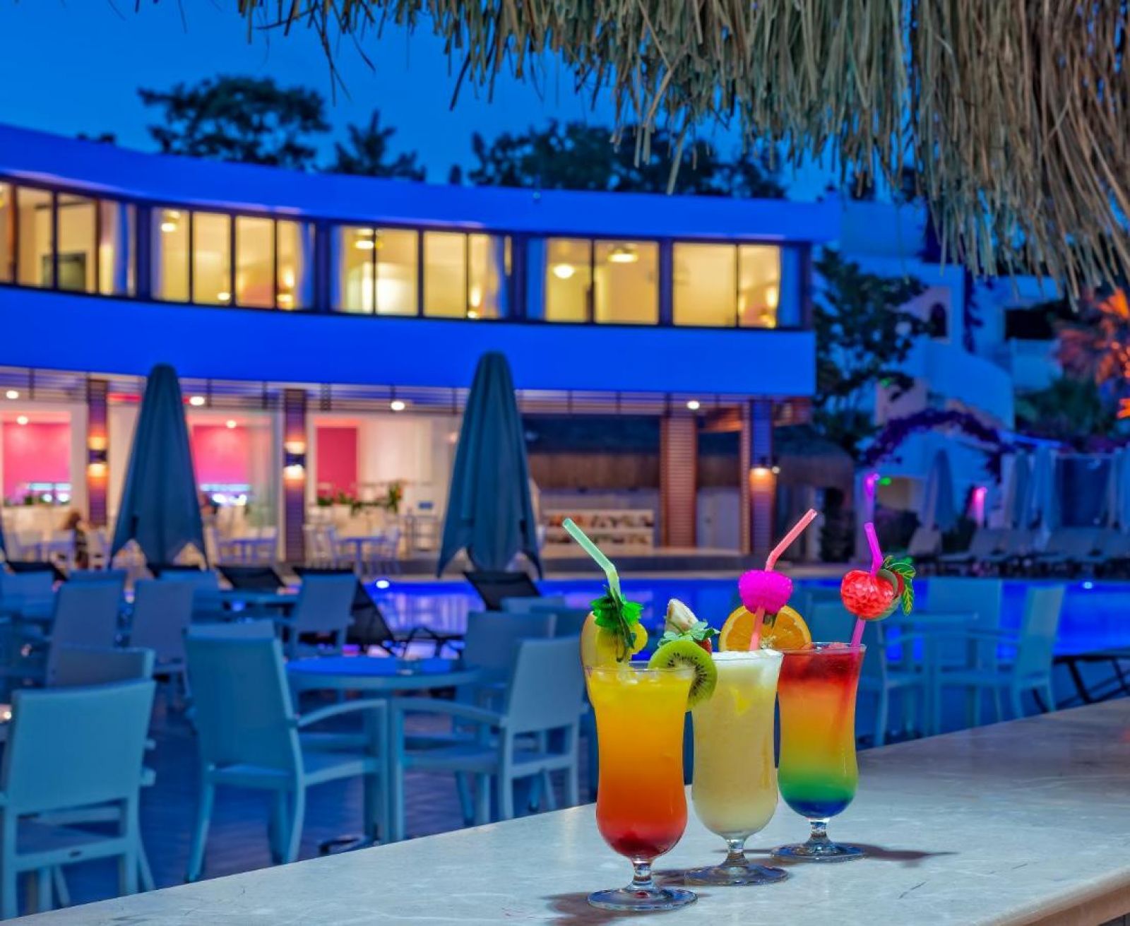 Основен ресторант с открита и закрита част, три бара: Looby Bar, Pool Bar и Beach Bar, два открити басейна.