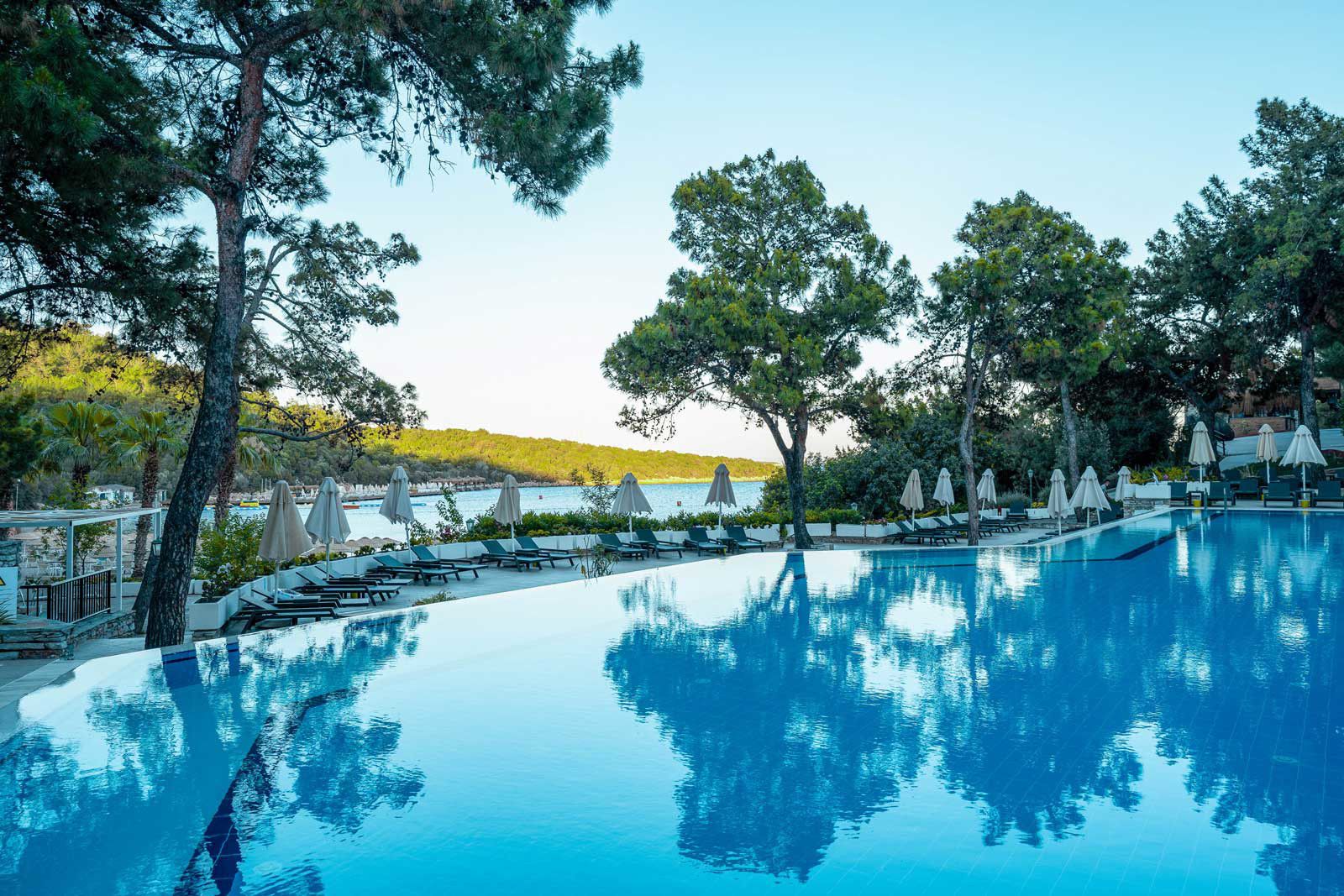 Хотелът се намира на 40 км от летище Милас и на 16 км от центъра на Бодрум, на 2 км от местността Ялъчифлик, на брега на морето. Разполага с обща площ от 120 000 m², последна реновация зимата през 2023 година. С изцяло обновени стаи, общи части, плажна зона и баровете на плажа. Автобусна спирка на 150 м от хотела.