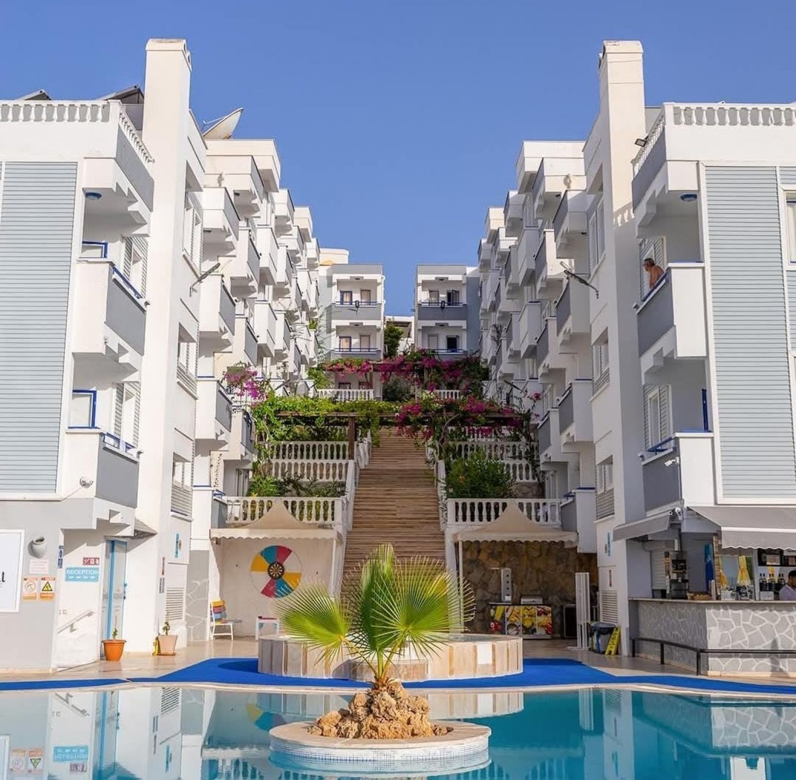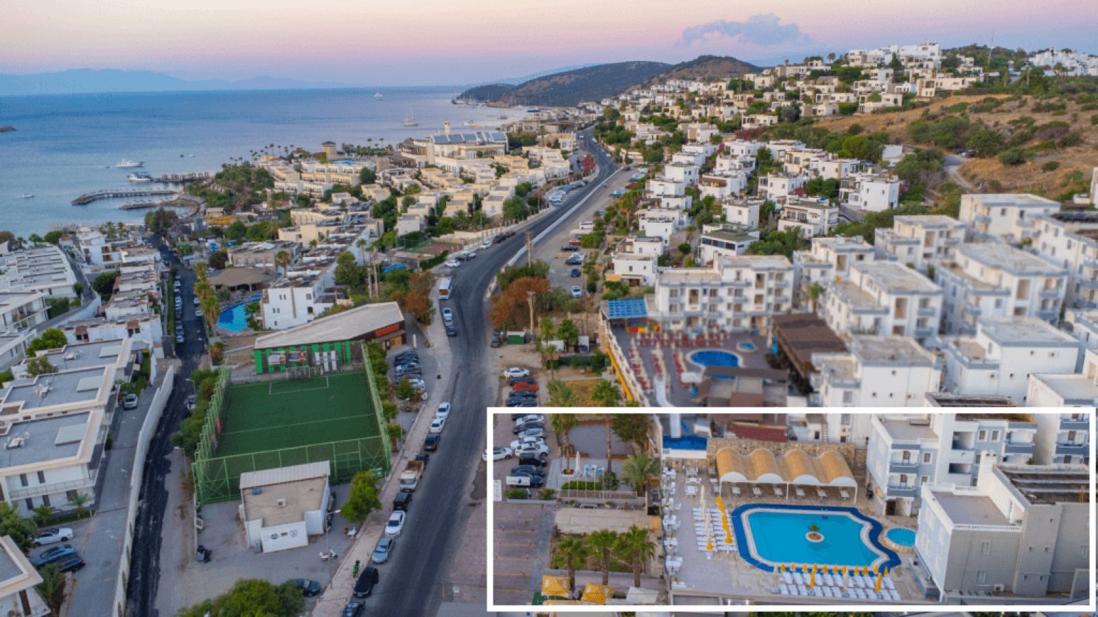 Намира се на 37 км от летище Бодрум, на 3 км от центъра на Бодрум, на 1 км от центъра на Гюмбет, на 400 от брега на морето. Построен 1995 г., на обща площ 2270 м².