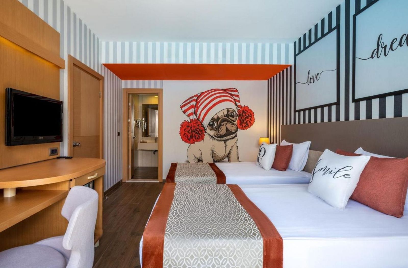 Всички стаи са оборудвани с климатик, телевизор, телефон, баня с душ, сешоар, халат и чехли, сет за чай/кафе, минибар (безплатен), сейф (безплатен).