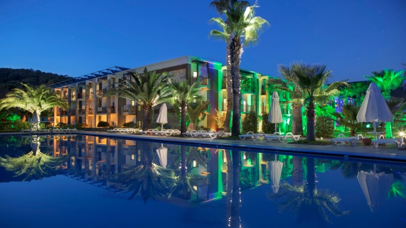 Хотелът е разположен на 12 км от летището и на 23 км от центъра на Бодрум, на брега на морето. Построен през 1991 г., обща площ 56 000 м², последна реновация е направена през 2017 г. Реновация на стаите през 2021 г.