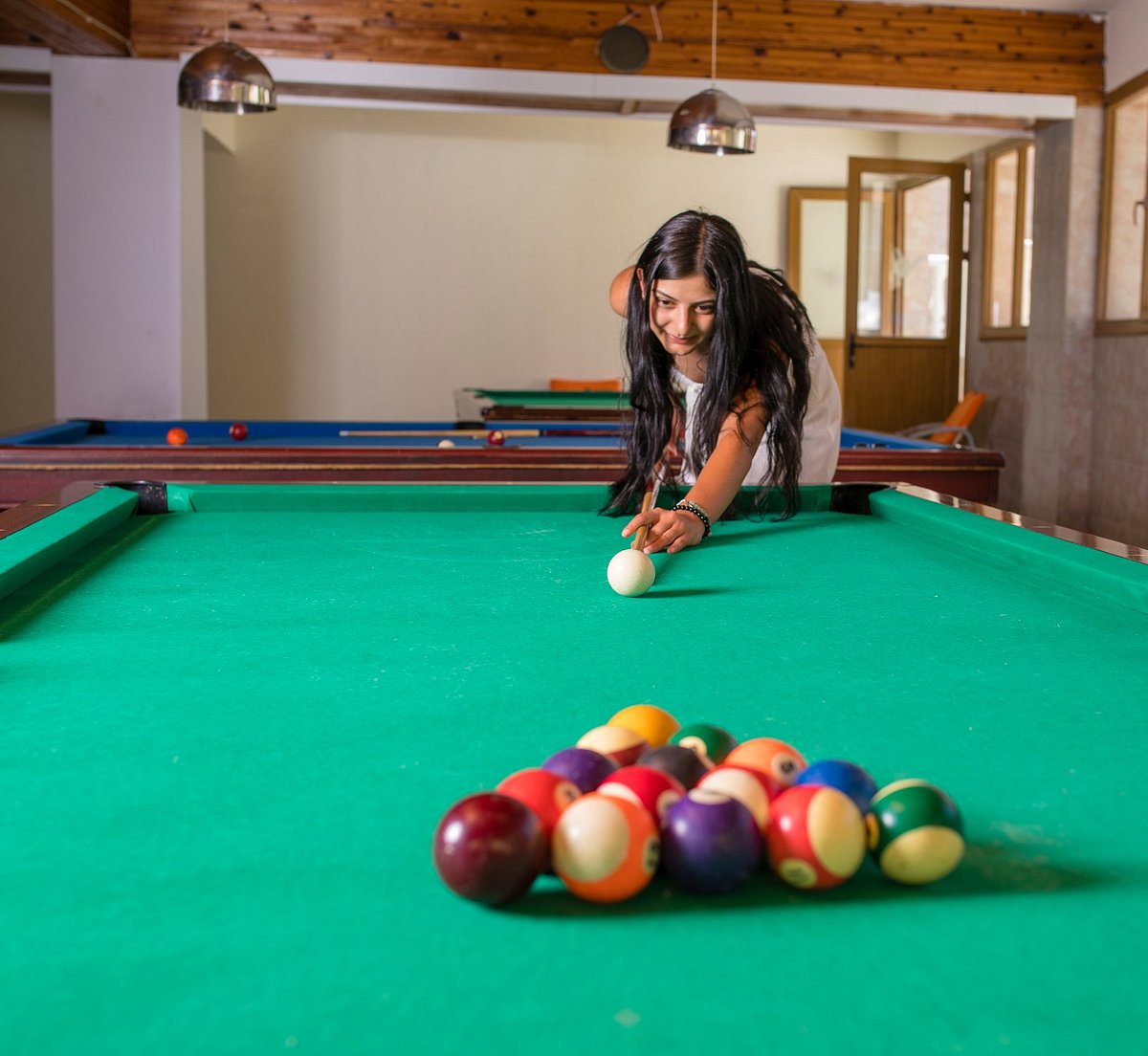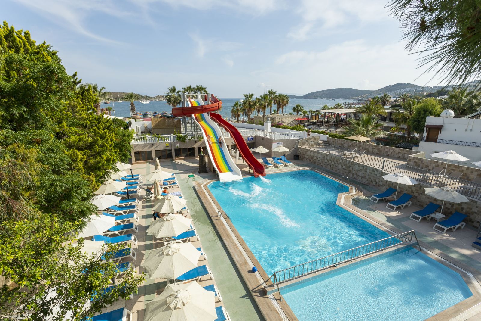Основен ресторант, 1 бар, 1 открит басейн, 2 водни пързалки, паркинг.