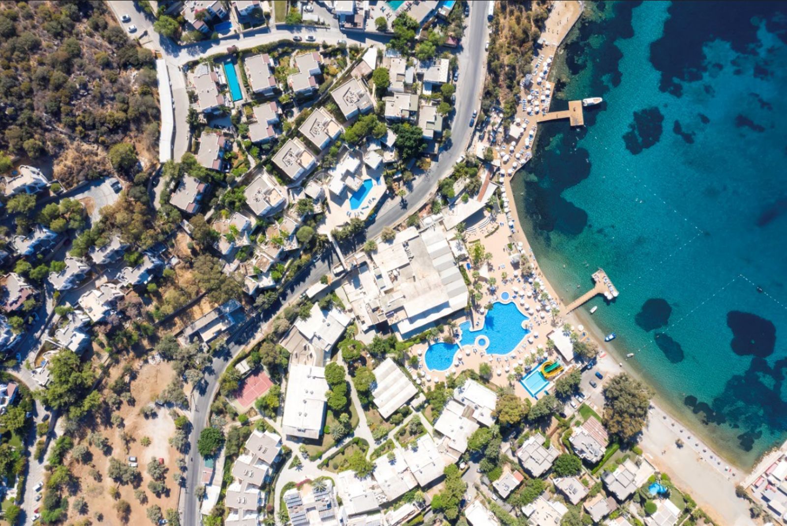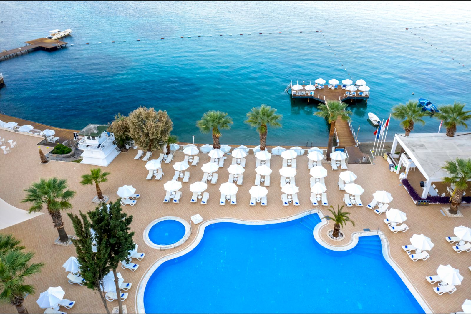 Намира се на 35 км от летище Милас, на 1 км от центъра на Бодрум. Построен върху обща площ от 32 000 м², последна реновация през 2015 г.