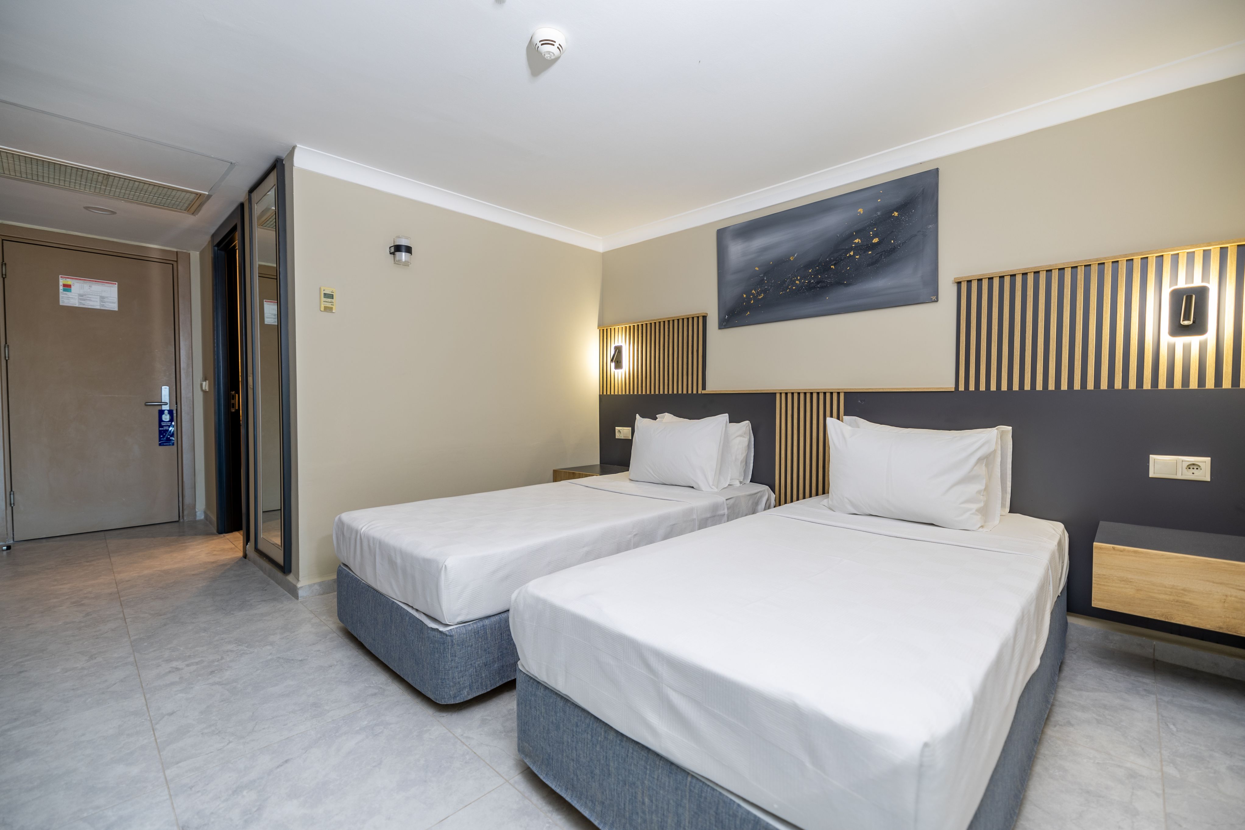 Всички стаи са оборудвани с: централен климатик, телевизор, телефон, баня с душ/вана, сешоар, мини бар (безплатен), сет за кафе и чай, сейф (безплатен), Wi-Fi (безплатен на цялата територия на хотела), керамичен под, балкон или тераса.