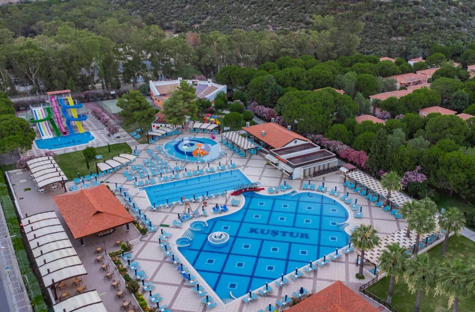 Намира се на 70 км от летище Измир, на 130 км от летище Милас, на 4 км от центъра на Кушадасъ, на 50 м от брега на морето. Построен през 1998 г., поетапно разширяван в периода 2004-2008 г., с обща площ 170 000 м², където тюркоазено синьото на Егейско море се слива с огромна гора от борови дървета с красиви цветя. BUNGALOW GARDEN ROOMS са реновирани през 2014 г., SUPERIOR ROOMS са реновирани през 2021 г. , FAMILY ROOMS през 2022 г.