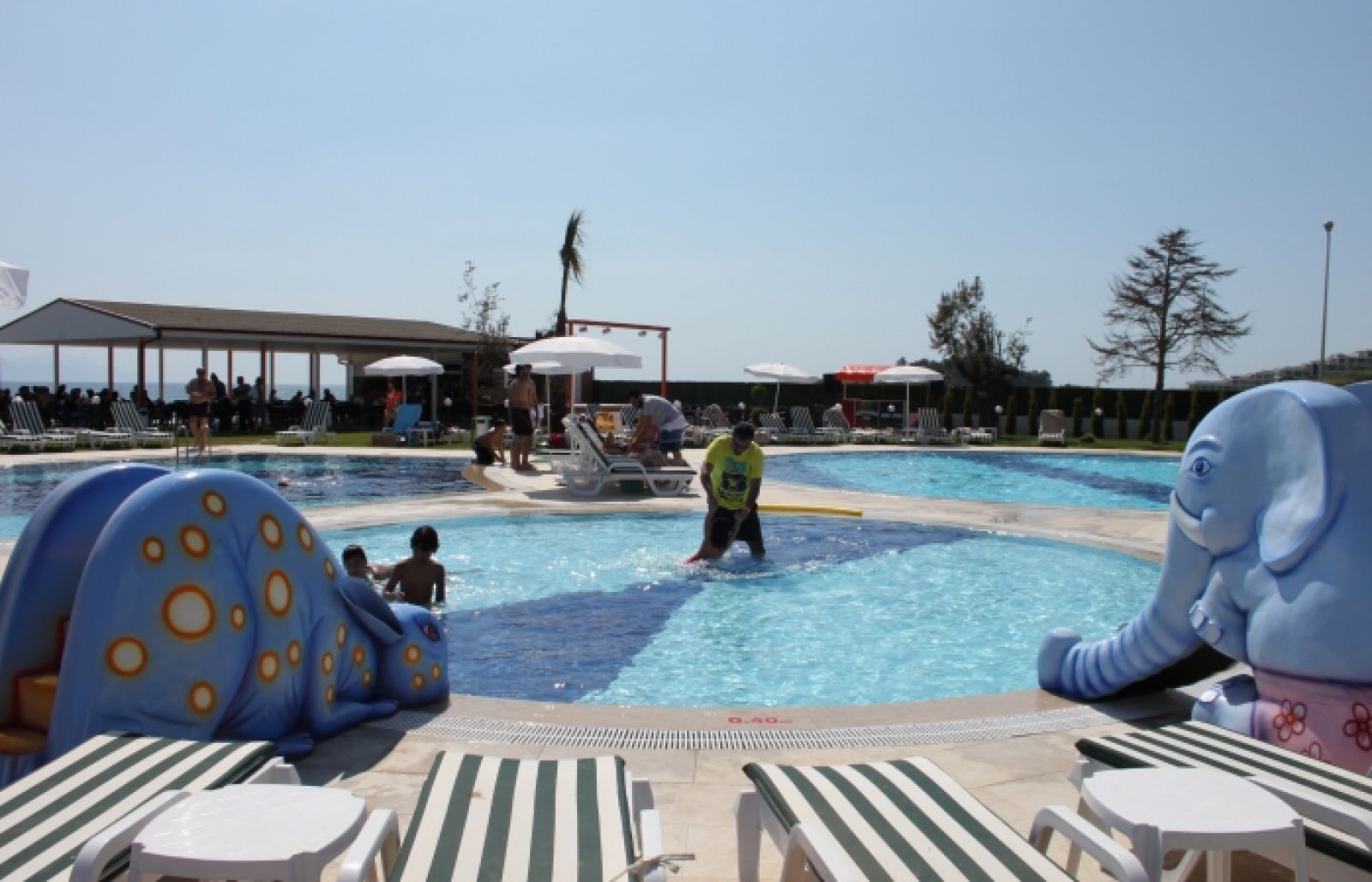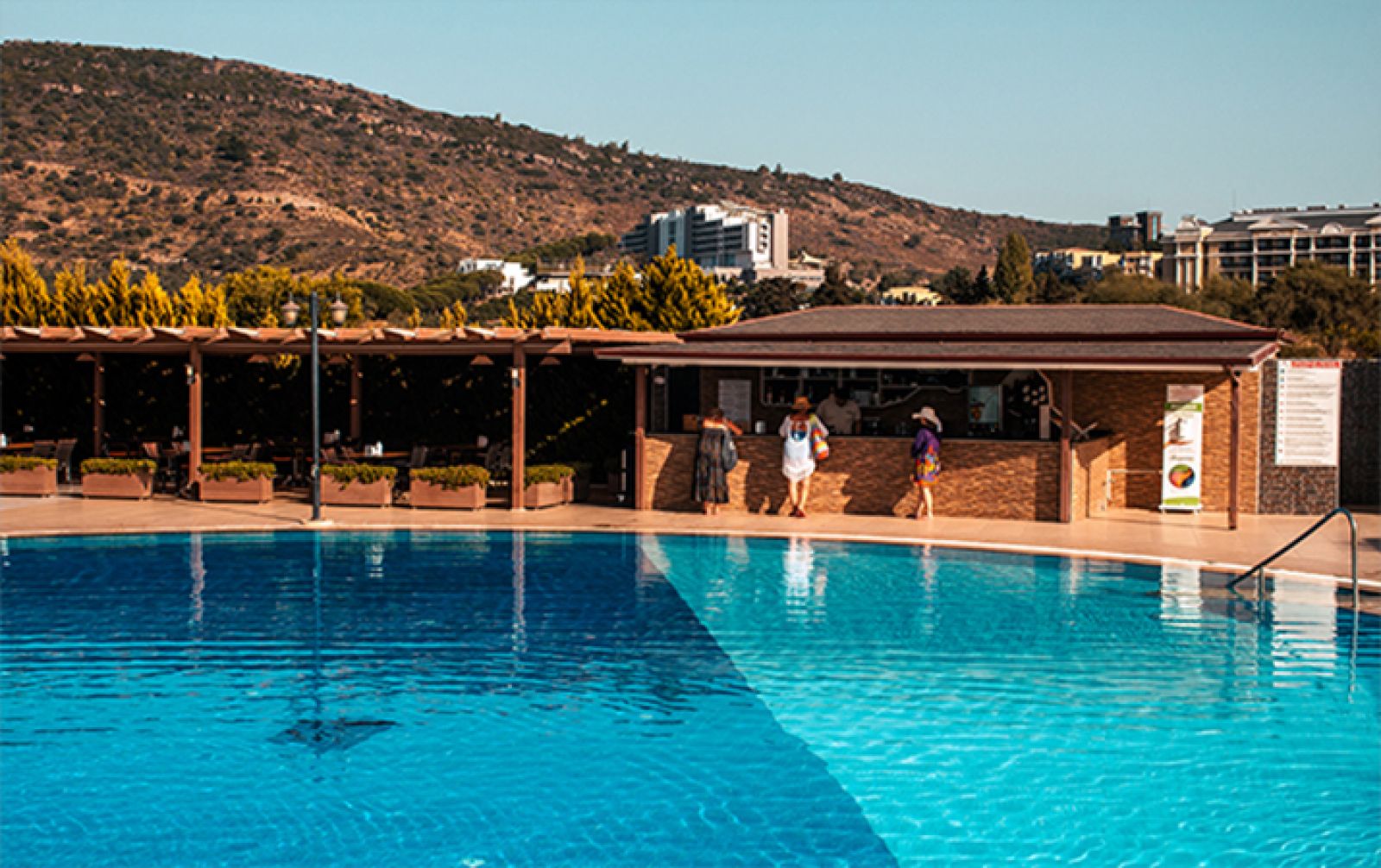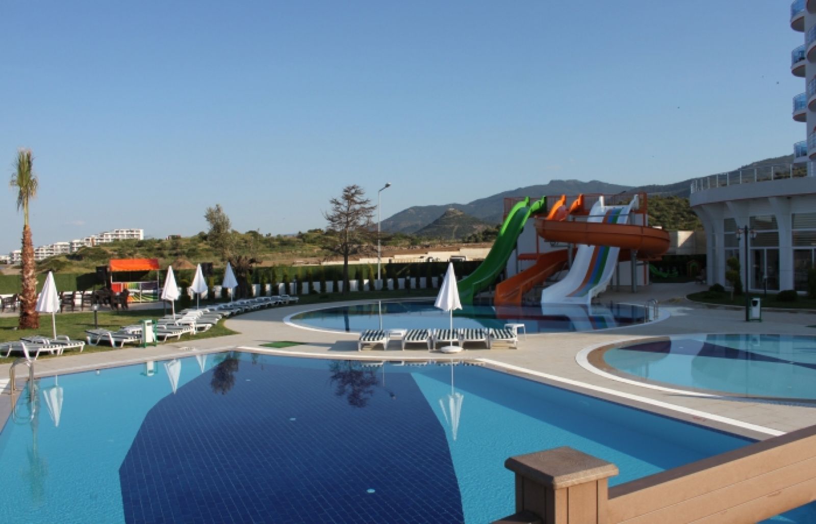 Основен ресторант, снек ресторант, 3 бара, открит басейн, закрит басейн, водни пързалки, магазини, СПА център, ТВ зала, паркинг.