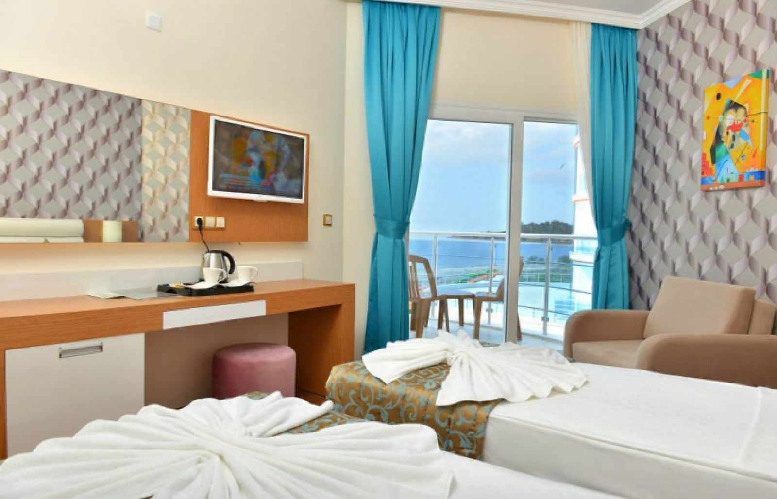 Хотелът разполага с общо 164 стаи, от които 143 стандартни стаи (23m²), 18 фамилни стаи (28m², две спални с врата) и 1 стая за инвалиди (23m²). Всички стаи са оборудвани с климатик, телевизор, телефон, баня с душ, сешоар, сет за чай/кафе, минибар, сейф, балкон. Почистване на стаите и смяна кърпите - всеки ден, смяна на спалното бельо - 3 пъти в седмицата.