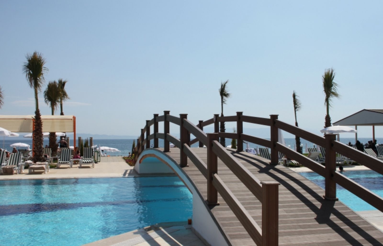 Собствен, пясъчен плаж. Чадъри, шезлонги и матраци при басейна и на плажа - безплатно, плажни кърпи - срещу депозит.