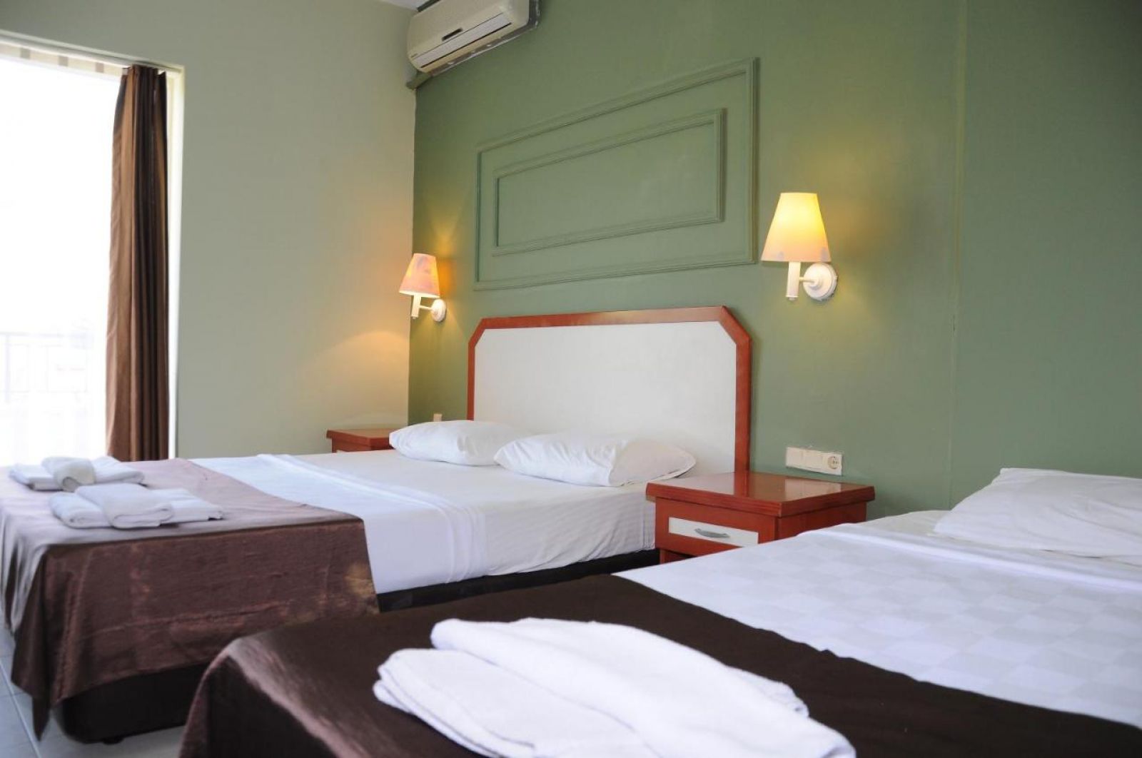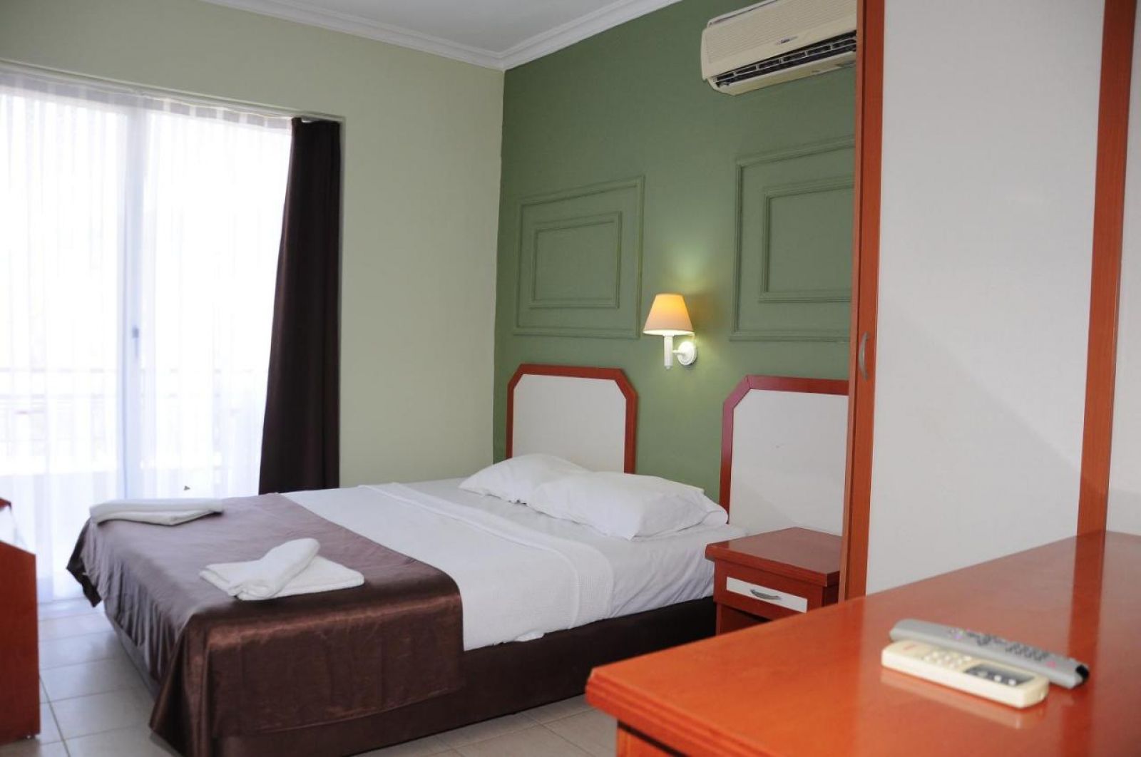 Хотелът разполага с общо 129 стандартни (18 кв.м.) и фамилни стаи (34 кв.м.), всички оборудвани с климатик, телевизор, телефон, баня с душ, сешоар, минибар (платен), сейф, балкон. Почистване на стаите – всеки ден, смяна на бельото и кърпите – 2 пъти в седмицата.