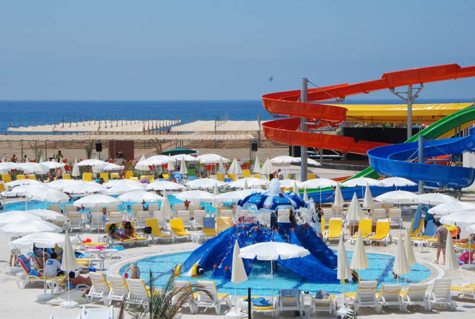 Основен ресторант, 3 Ала Карт ресторанта (турски, рибен, барбекю - с предварителбно записване, за 1 седмичен престой се полага 1 посещение - безплатно), 6 бара, 2 открити и 2 закрити басейна, 1 конферентна зала, SPA център, магазини, фризьорски салон. За децата: детски басейн, мини клуб, анимация, детска площадка. Безплатни услуги: сауна, турска баня, плажен волейбол, тенис на корт, тенис на маса, баскетбол, боулинг, безжичен интернет (на lobby). Платени услуги: масаж, игрални автомати, лекар, водни спортове. Плаж: Собствен - пясъчен. Чадъри, шезлонги и матраци на плажа и басейна - безплатно.
