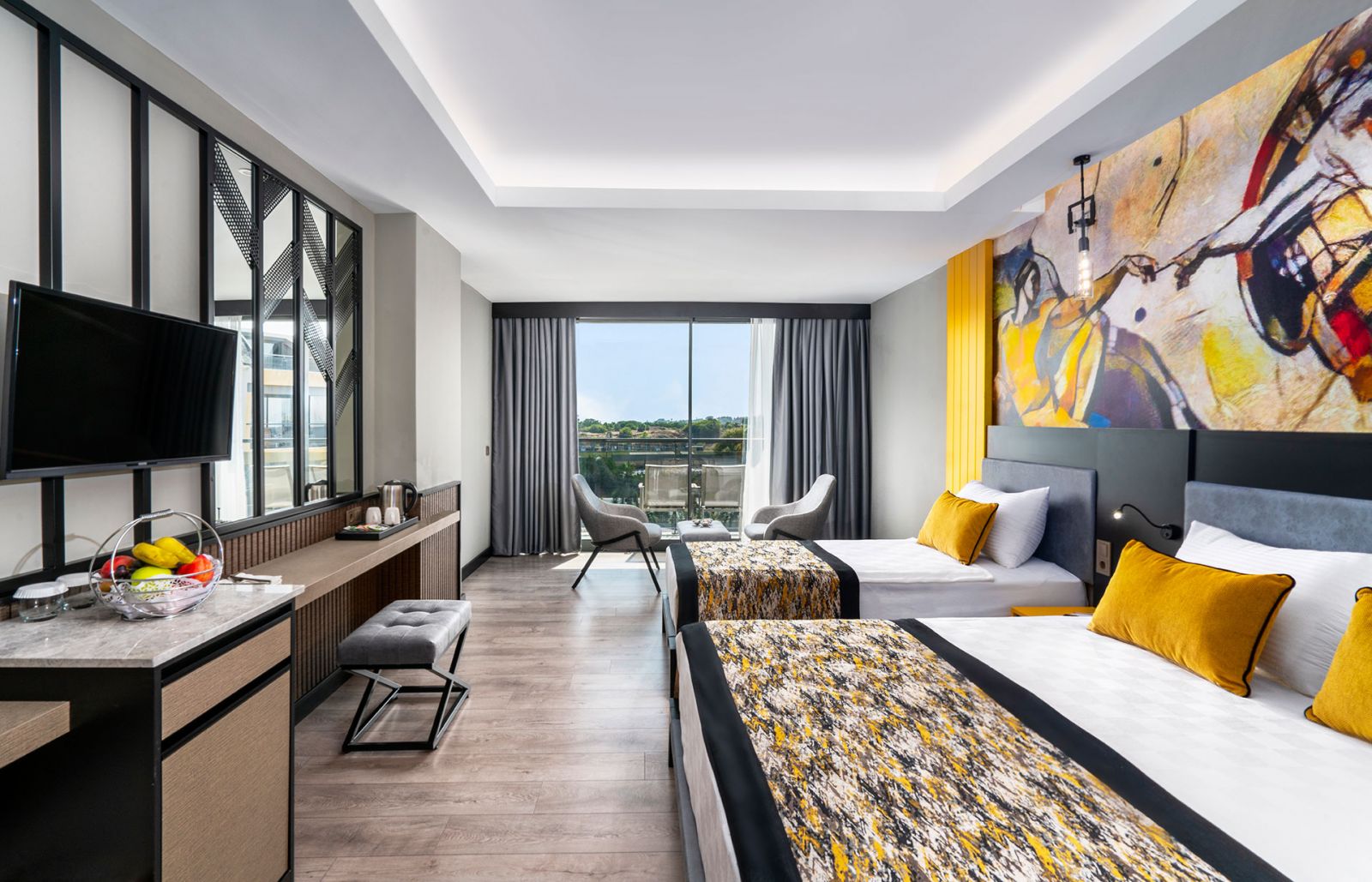 Хотелът разполага с общо 335 стаи, разположени в една 7 етажна основна сграда, Standart Rooms (изглед градина и басейн - 28 м²), Family Rooms (2 спални, 1 баня, изглед градина и басейн -50 м²), Comfort Rooms (изглед море -28 м²).