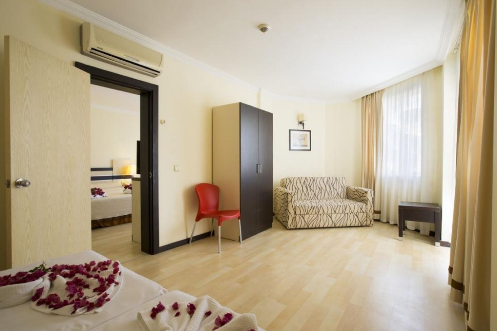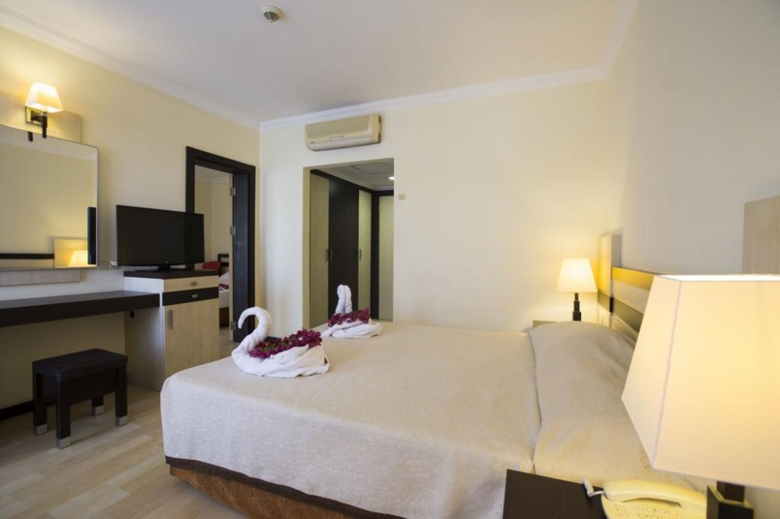 Всички стаи са оборудвани с климатик, телевизор, телефон, баня с душ, сешоар, сет за чай/кафе, минибар, сейф, балкон или тераса.