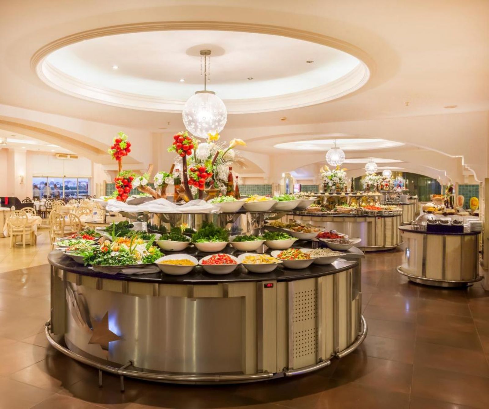 Хотелът разполага с основен ресторант, а-ла-карт ресторанти, 5 бара, дискотека, 3 открити басейна, закрит басейн, 5 водни пързалки, 2 конферентни зали, анимация. За децата: 4 детски басейна, детска площадка, мини клуб (4-12 г.),тийн клуб (12-16г.), 5 детски пързалки. Безплатни услуги - сауна, турска баня, фитнес, плажен волейбол, баскетбол, тенис на маса, анимационна програма, безжичен интерент (на лоби). Платени услуги: масаж, СПА, билярд, водни спортове, лекар, фризьорски салон, пералня, магазини, коли под наем.