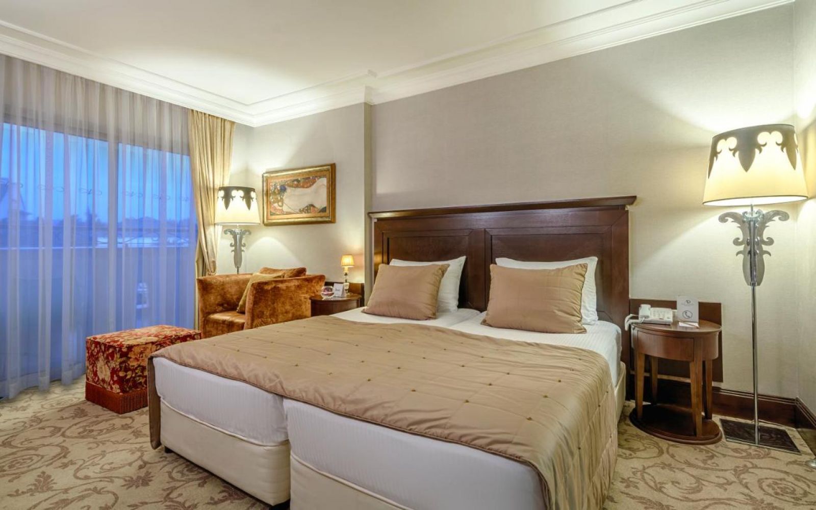 Разполага с общо 728 стаи, като всяка е оборудвана с балкон, телефон, сет за чай/кафе, телевизор, интернет (безплатен), сешоар, халати за баня, мини-бар (безплатен), сейф. Почистване на стаята – ежедневно, смяна на спалното бельо – 3 пъти в седмицата.