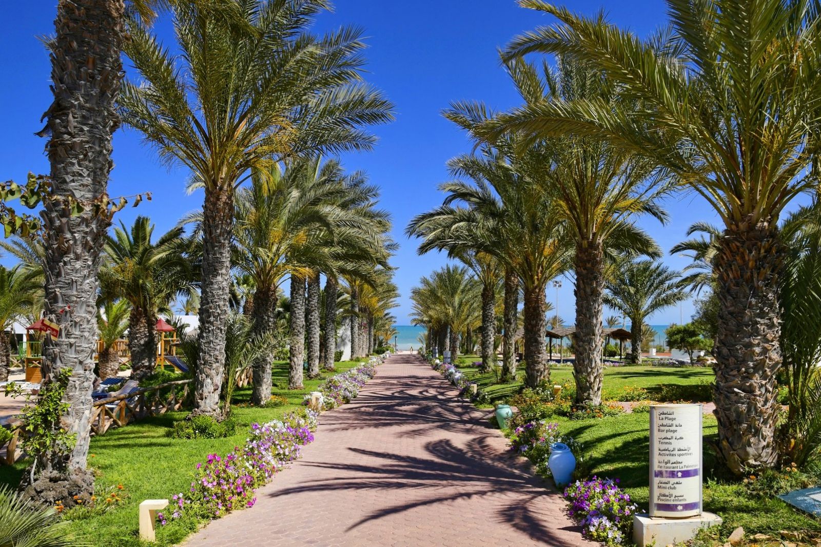 Намира се на 30 км от летището на Джерба, на 6 км от центъра на града, на брега на морето, на красивия плаж със златен пясък Агир. Построен 1997 г., на обща площ от 70 000 м2. Реновиран 2011 г.