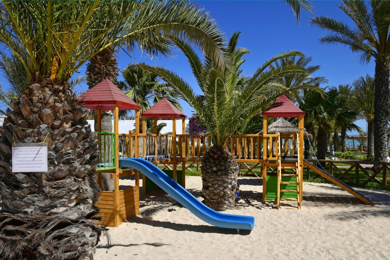 Основен ресторант, 2 а-ла-карт ресторанта (италиански, тунизийски – срещу заплащане/с предварителна резервация, съгласно концепцията на хотела/1 безплатно посещение при минимум 7 нощувки), снек ресторант на плажа (само през лятото), 3 бара, 2 открити басейна, 1 закрит басейн, Аква парк с 5 водни пързалки, СПА център,обмяна на валута, магазин, паркинг.