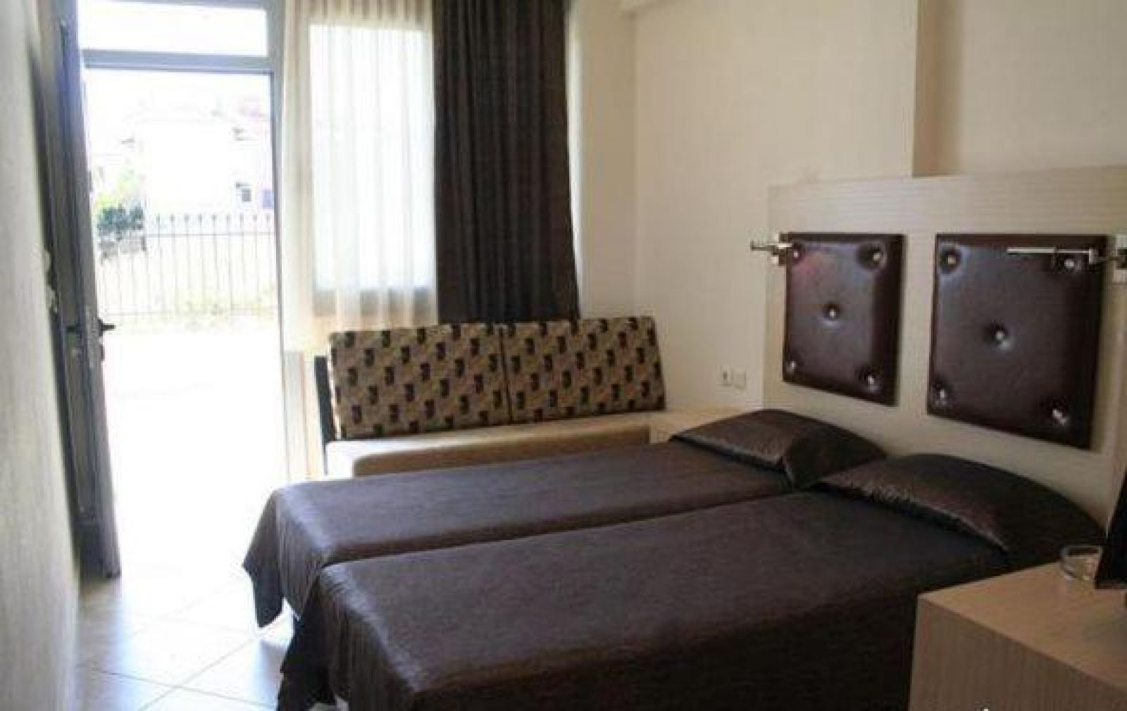Studio(~ 20 кв.м) 2 единични легла и разтегателен диван, кухненски ъгъл.