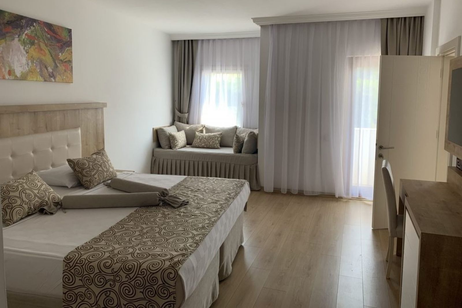Family Room in Main Building – Фамилна стая в основната сграда – едностайно помещение, предлагаща изглед към земя, път или градина. Състои се от 2 отделения, но без свързваща помежду им врата и има двуетажно легло. Подовата настилка е ламинат, а квадратурата на помещението е 33-35 м². В стаята има баня с душ, огледало, LCD телевизор със сателитни канали, сейф, сешоар, телефон, централен климатик, минибар (само с вода - безплатно), безплатен Wi-Fi, балкон.