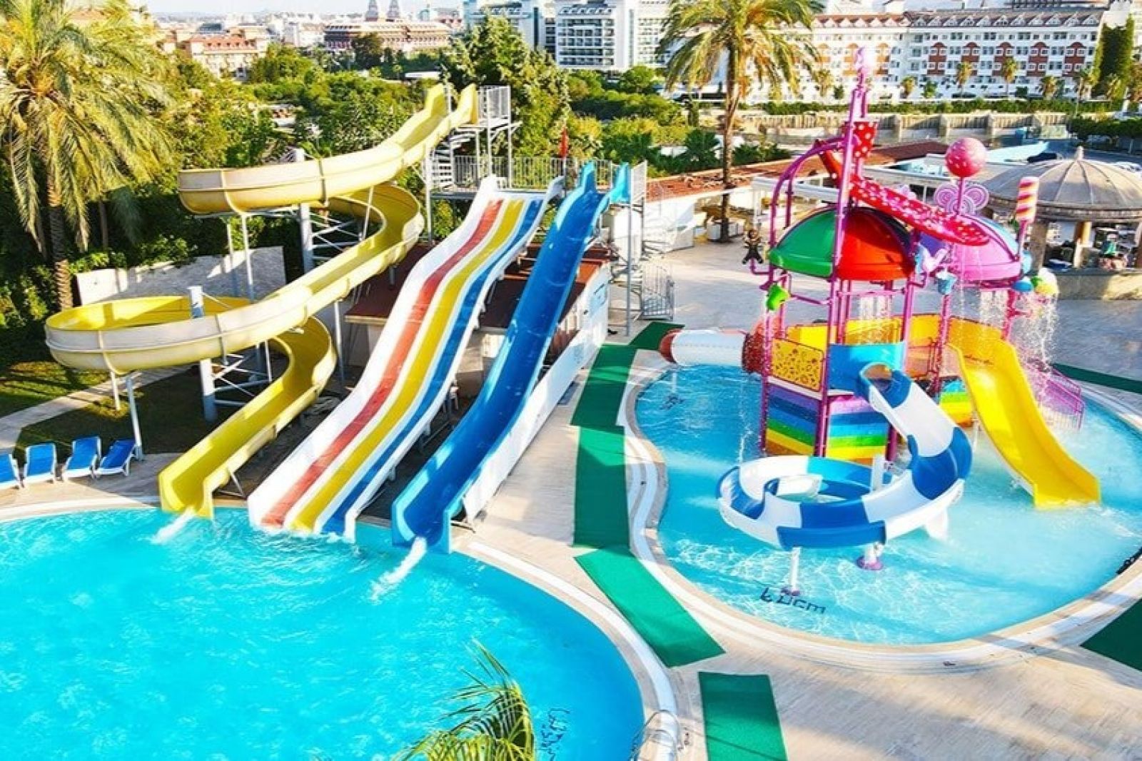 За децата: детска площадка, два детски басейна, 3 водни пързалки, мини клуб (4-12г.), детско столче в ресторанта, детегледачка (срещу заплащане)