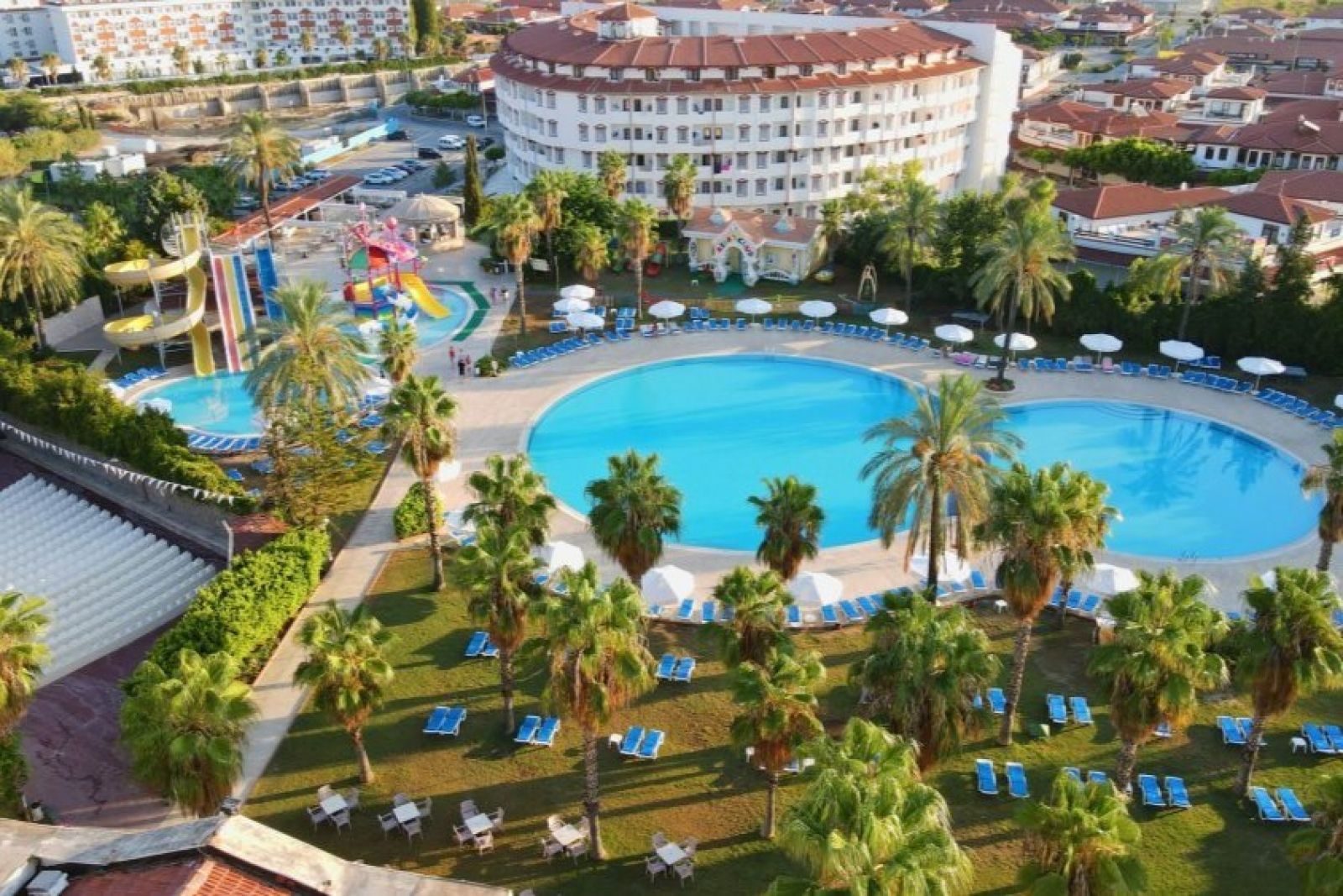 Разположение: Хотелът се намира на 65 км от международното летище в Анталия, на 12 км от Манавгат, на 5 км от Сиде, на брега на морето. Построен е през 1989 г., последната реновация е направена през 2022 г., и разположен върху територия с обща площ от 40 000 м2.