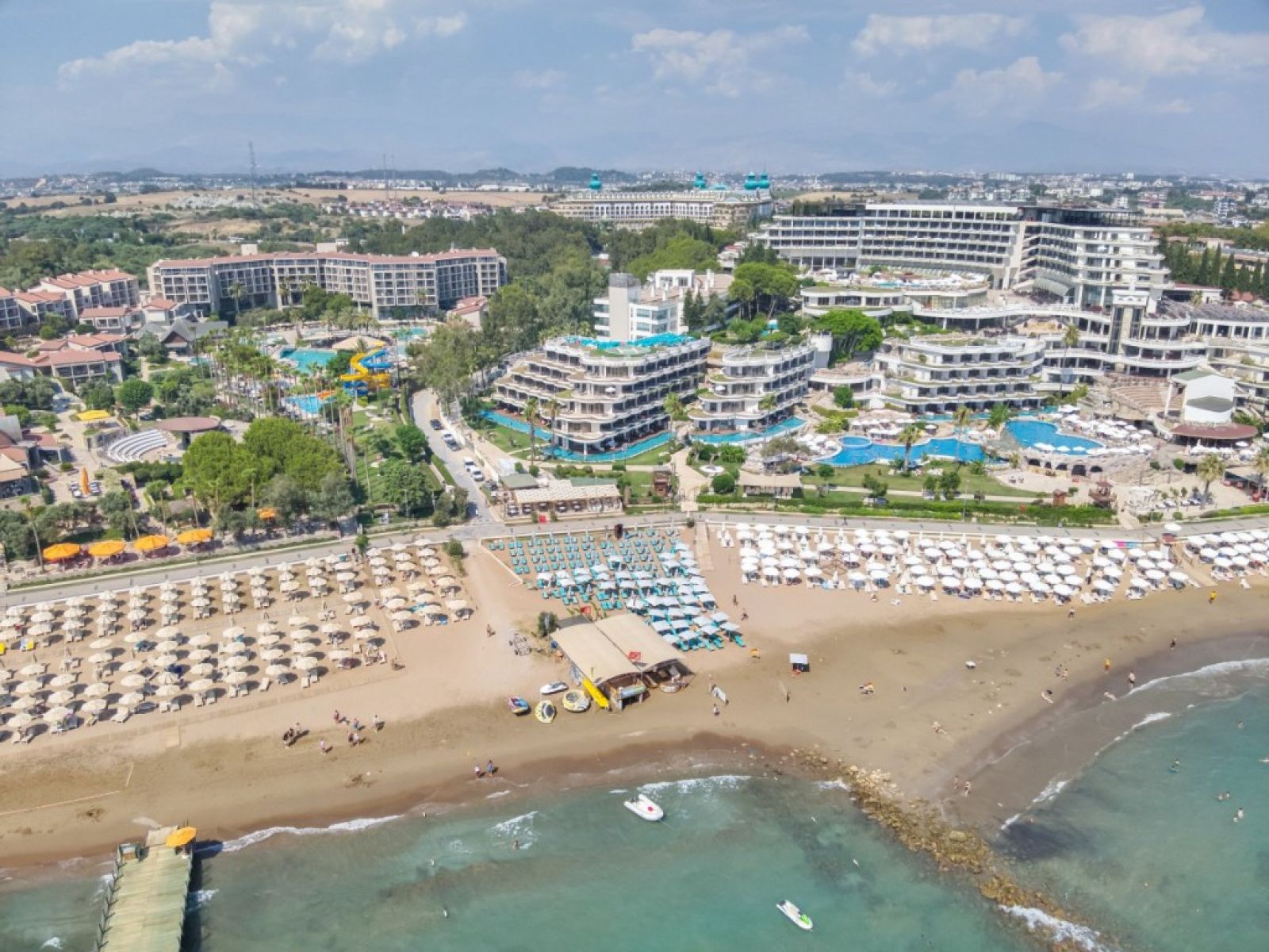 Хотелът е разположен на брега на морето, заобиколен от поддържани градини. На територията има няколко басейна с обзаведена слънчева тераса, голям воден парк с водни пързалки за възрастни и деца. Хотелът разполага със собствен пясъчен плаж с шезлонги и чадъри. Хотелът разполага с два основни ресторанта, които сервират шведска маса, а ла карт ресторанти, сладкарски бюфет с бърза храна, гьозлеме и суши. Заслужава да се отбележи а ла карт гурме ресторант, където се допускат само възрастни. Гостите могат да си поръчат освежаващи алкохолни и безалкохолни напитки на баровете. Хотелът предлага на гостите разнообразие от спортни дейности и развлечения, включително билярд, настолни игри, водна топка, аеробика, както и дневна и вечерна анимация. За малките гости има мини клуб, детски басейн и услуги за гледане на деца. Гостите могат да посетят фитнес центъра с фитнес зала и спа центъра със солна стая, който предлага разнообразие от процедури за лице и тяло, масажи и ароматерапия.