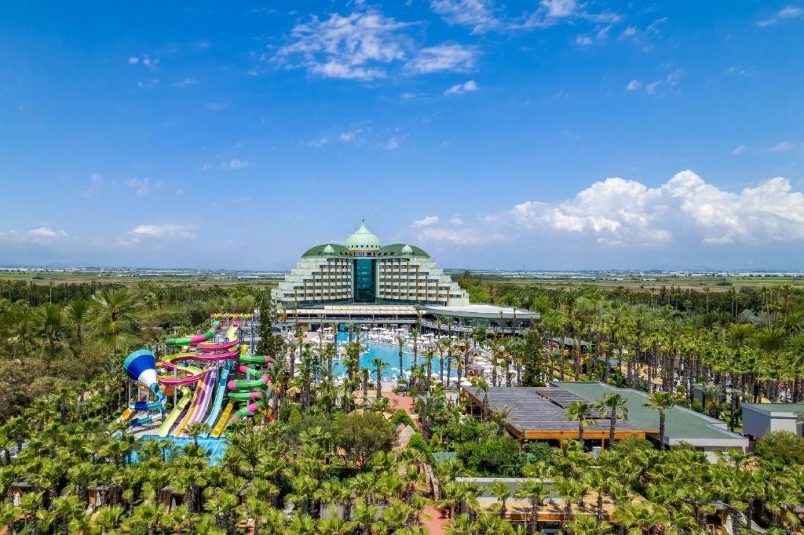На територията на хотела: Хотелът предлага безплатен Wi-Fi във фоайето. Предлагат се и конферентни зали и амфитеатър под наем. Гостите могат да се възползват от медицинските услуги на хотела, обмяна на валута, паркинг, коли под наем, салон за красота, магазини и пералня. Освен това има открити и закрити басейни с различни размери, включително басейн с пързалки. Основният ресторант "Делфин" е отворен от 7:00 до 21:00 часа. Ресторантите а ла карт предлагат разнообразие от кухни, включително турска, италианска, японска, китайска, мексиканска, гръцка и рибна кухня. Те са отворени от 19:00 до 21:30 часа. Хотелът разполага още с кафене Avanti, лоби бар, бар Joia, бар край басейна и снек бар Palm. Диско барът е отворен от 23:00 до 02:00 часа.