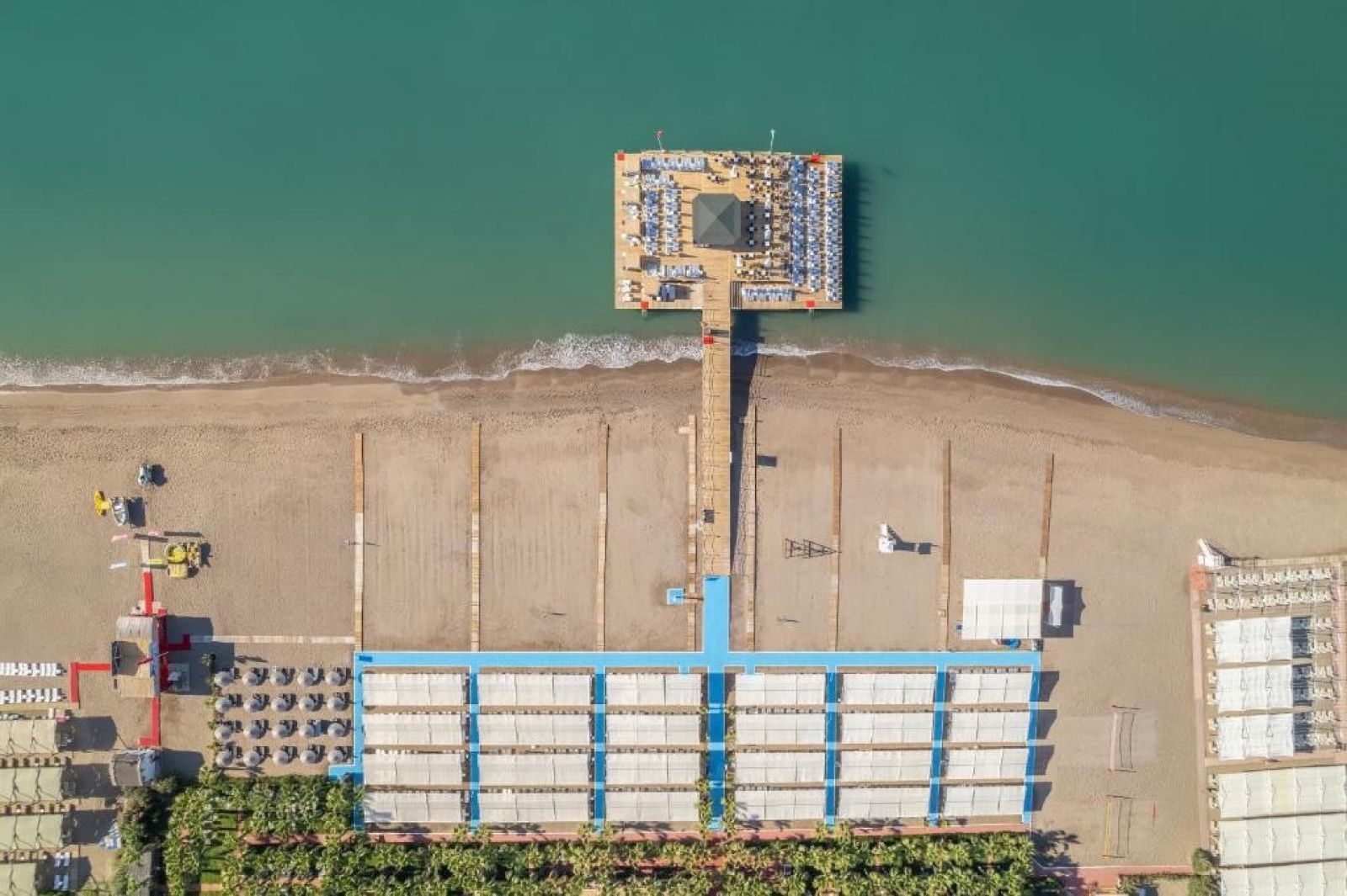 Плаж: Плажът е на 70 метра от хотела, на първа брегова линия. Има дървен кей с дължина 35 метра. Чадъри, шезлонги, матраци и кърпи се предоставят безплатно, палатки на плажа се предлагат срещу допълнително заплащане. Дължината на плажната ивица е 200 метра.