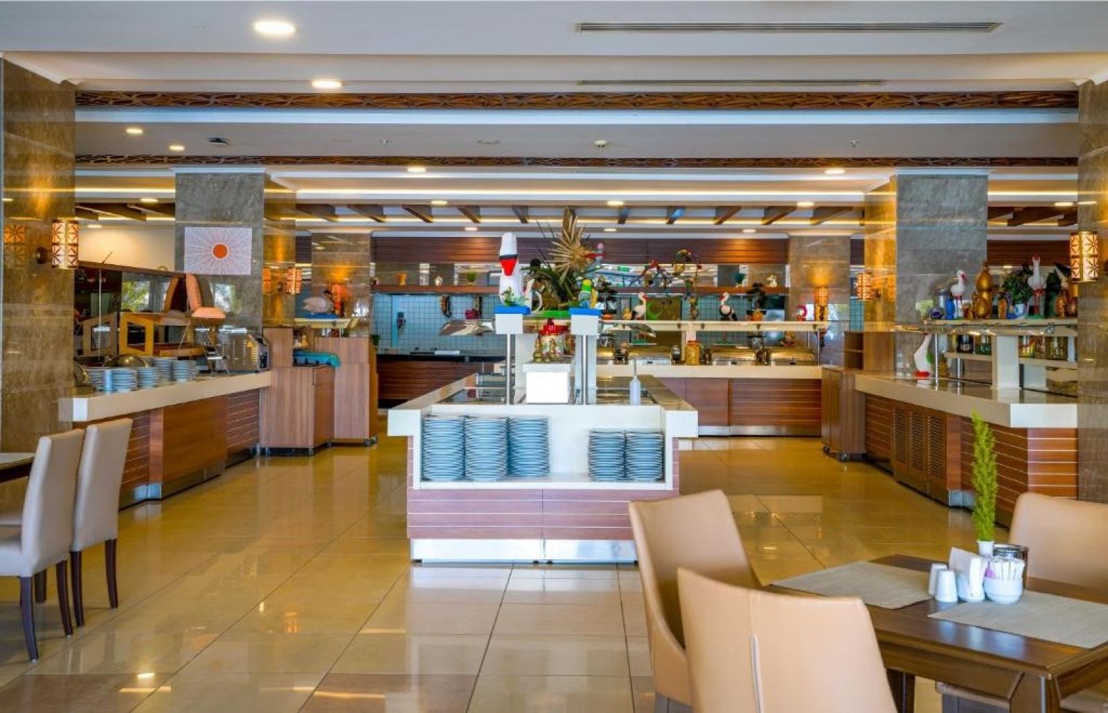На територията на хотела: Основен бзфет ресторант със закрита и открита зона, 2 а ла карт ресторанта (азиаткси и рибен с предварителна резервация и едно безплатно посещение за седмичен престой), 5 бара, 3 външни басейна (един от които с водни пързалки), вътрешен басейн (с подгряване през зимния сезон), конферентна зала.