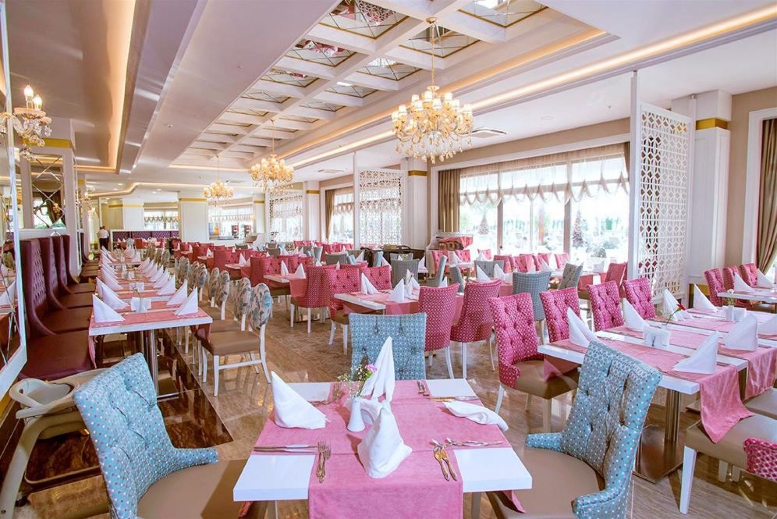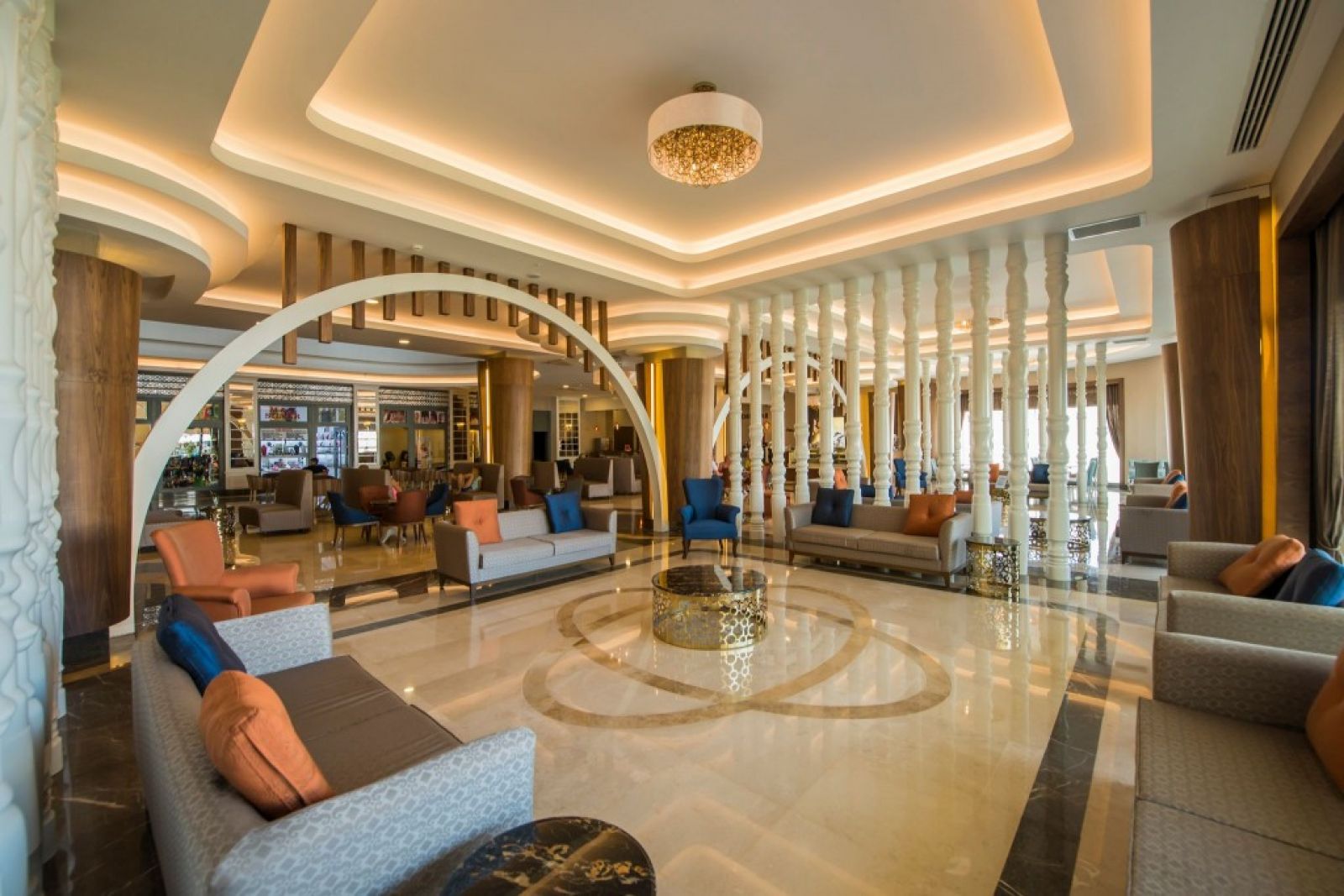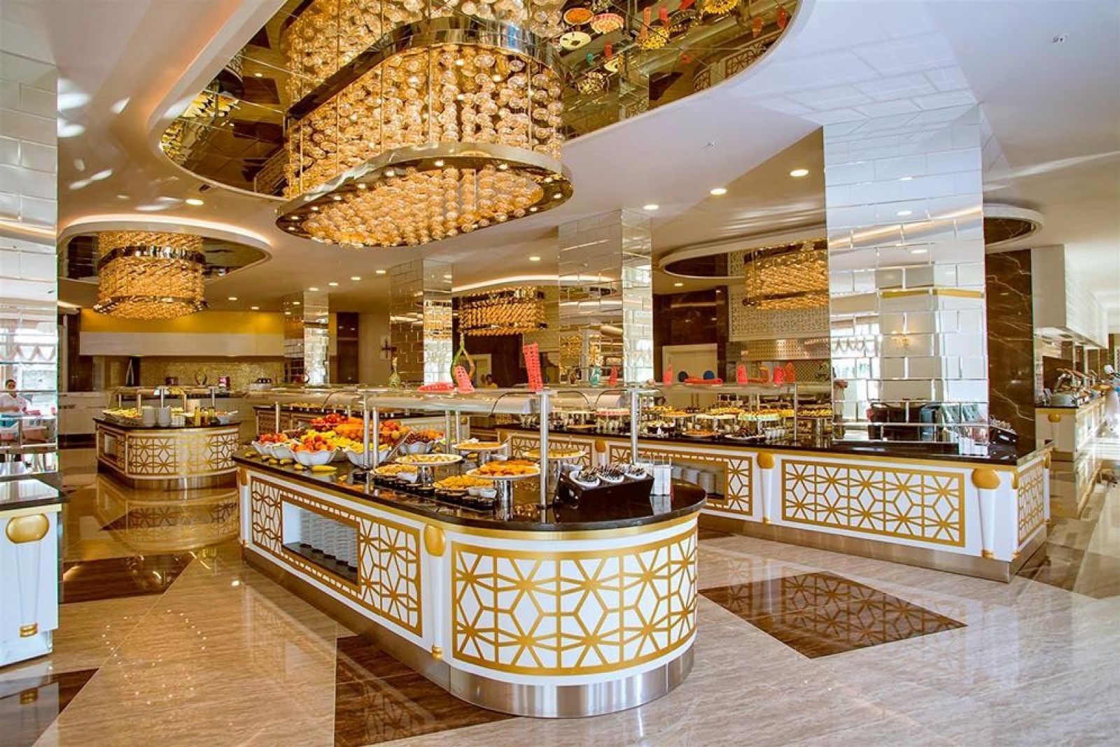 На териорията на хотела: лоби бар, основен ресторант с вътрешен двор, три а ла карт ресторанта (в зависимост от наличността, изисква се резервация) различни барове, магазини, фризьорски салон, закрит плувен басейн ( само през зимния сезон) и модерно оборудвания уелнес център. В цялата територия на хотела е осигурена безжична интернет връзка (WiFi). В градината на хотела - сладководни басейни, гигантски аквапарк с много различни пързалки за малки и големи.
