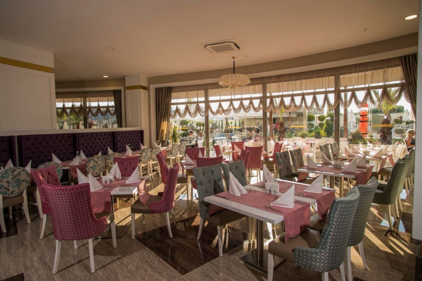 Разположение: Нов хотел открит през лятото на 2024 г, намиращ се в сърцето на туристическия център Kumköy/Сиде. Разстоянието до град Сиде е 7 км, 11 км от Манавгат и на 55 км от летището в Анталия. В близост има автобусна спирка и таксита.