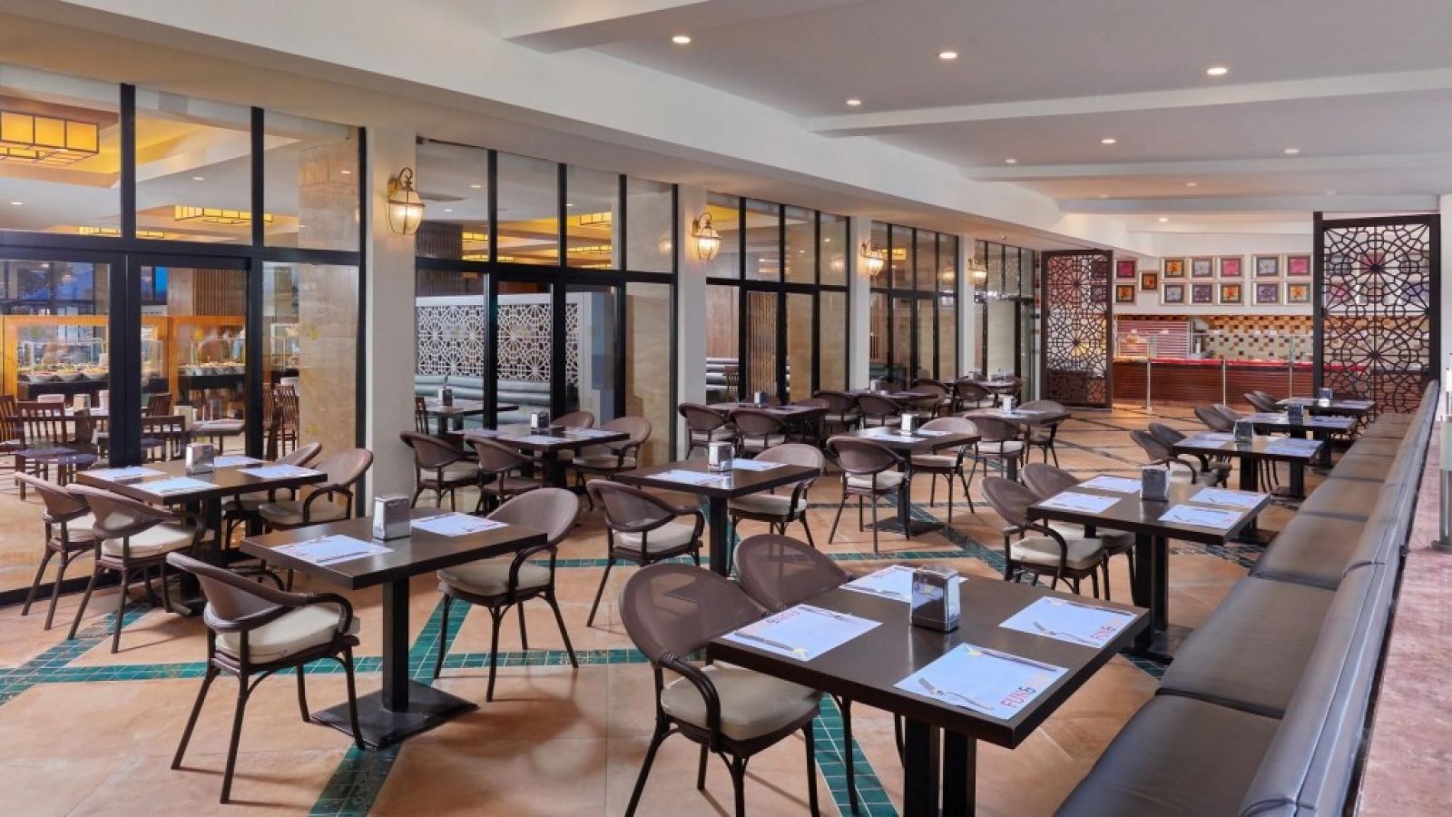 Изхранване: Закуска, обяд, вечеря, вечерен бюфет (отворен бюфет в основния ресторант), специален детски бюфет за обяд и вечеря, някои местни или чуждестранни алкохолни и безалкохолни напитки, обслужване в снек-бара, сладкарница, топли и студени напитки в баровете, турско кафе и специални видове кафе,