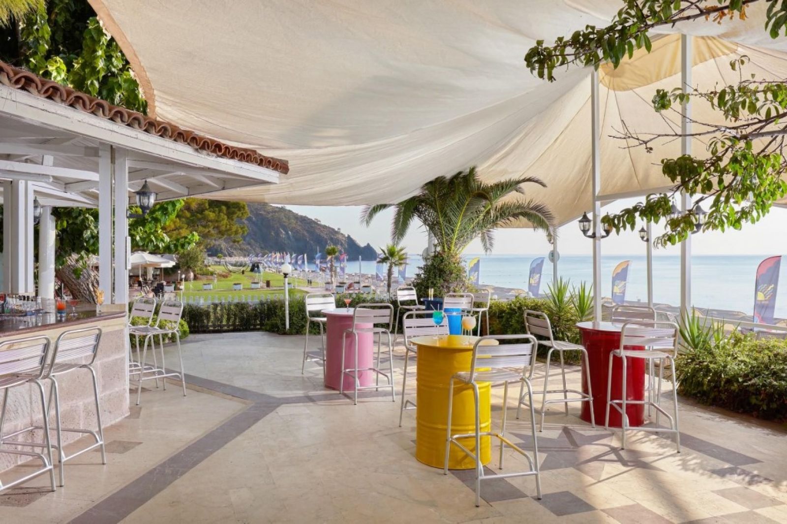 На територията на хотела: 2 открити басейна, един от които с две водни пързалки (за възрастни и деца), вътрешен басейн, 1 основен ресторант със специална детска секция и бюфет, 5 бара, 1 сладкарница, 3 ресторанта à la carte (еднократно безплатно посещение на един за седмичен престой), 1 полуоткрита дискотека, сервиз за закуски край басейна.