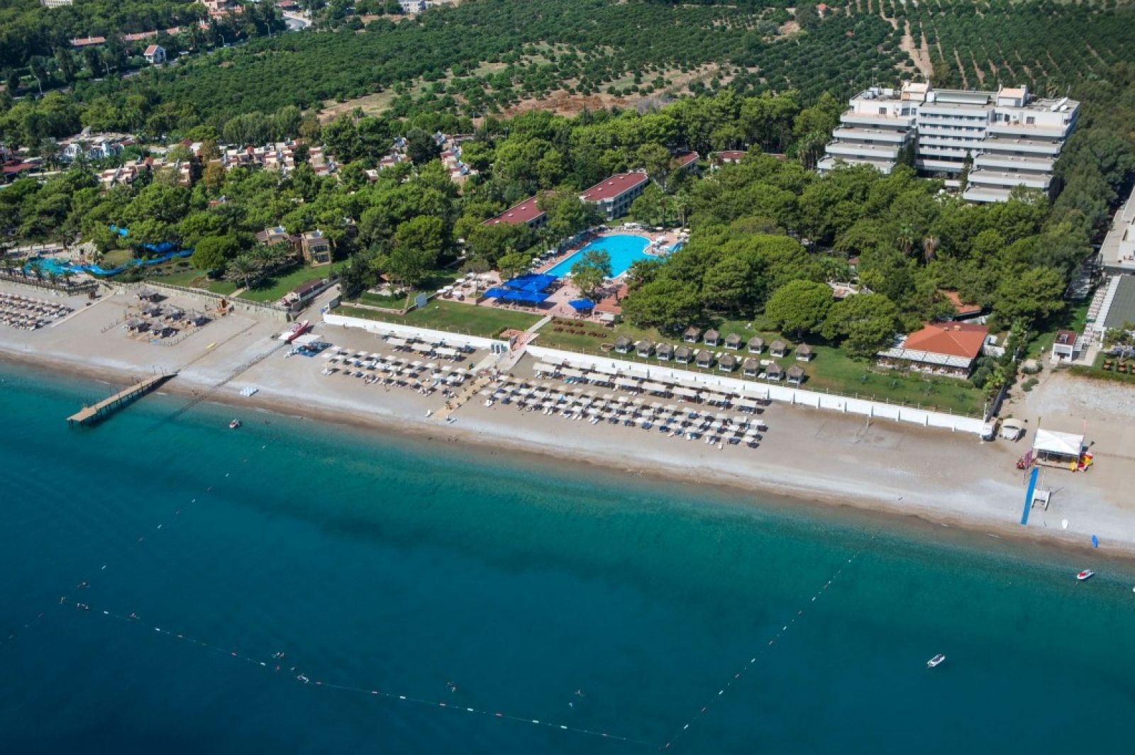 Безплатни услуги: детски колички, басейни, пързалки, сейфове в стаите, минибарове, фитнес, турска баня, сауна, стаи за отдих, тенис корт, тенис кортове и ракети, шах, табла, карти за игра, мини футбол, дартс, боча, тенис на маса, плажен волейбол, игри в басейна, коремна терапия, степ, аеробика, музика на живо, дискотека, плаж и басейн, Wi-Fi в целия хотел, паркинг.