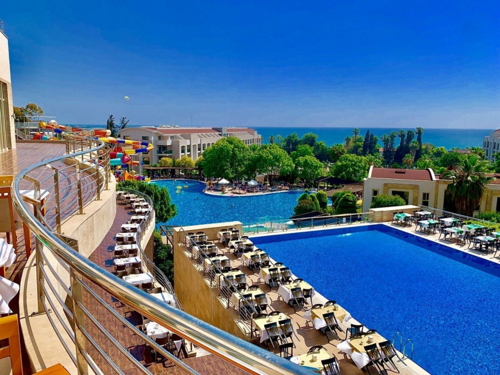 Основен ресторант, 4 а-ла-карт ресторанта /италиански, османски, мексикански, средиземноморски/, 7 бара, 2 басейна, водни пързалки, вътрешен басейн, СПА център, масажи, сауна, турска баня, плажен волейбол, баскетбол, тенис на маса, тенис на корт, мини клуб/4-12г./, анимация/жива музика, дискотека, дневни и нощни забавления/, 4 конферентни зали. Платени услуги: някои вносни напитки, наргиле, билярд, светлини и екипировка за тенис корта, масажи, телефон, детегледач, дискотека, витамин бар.