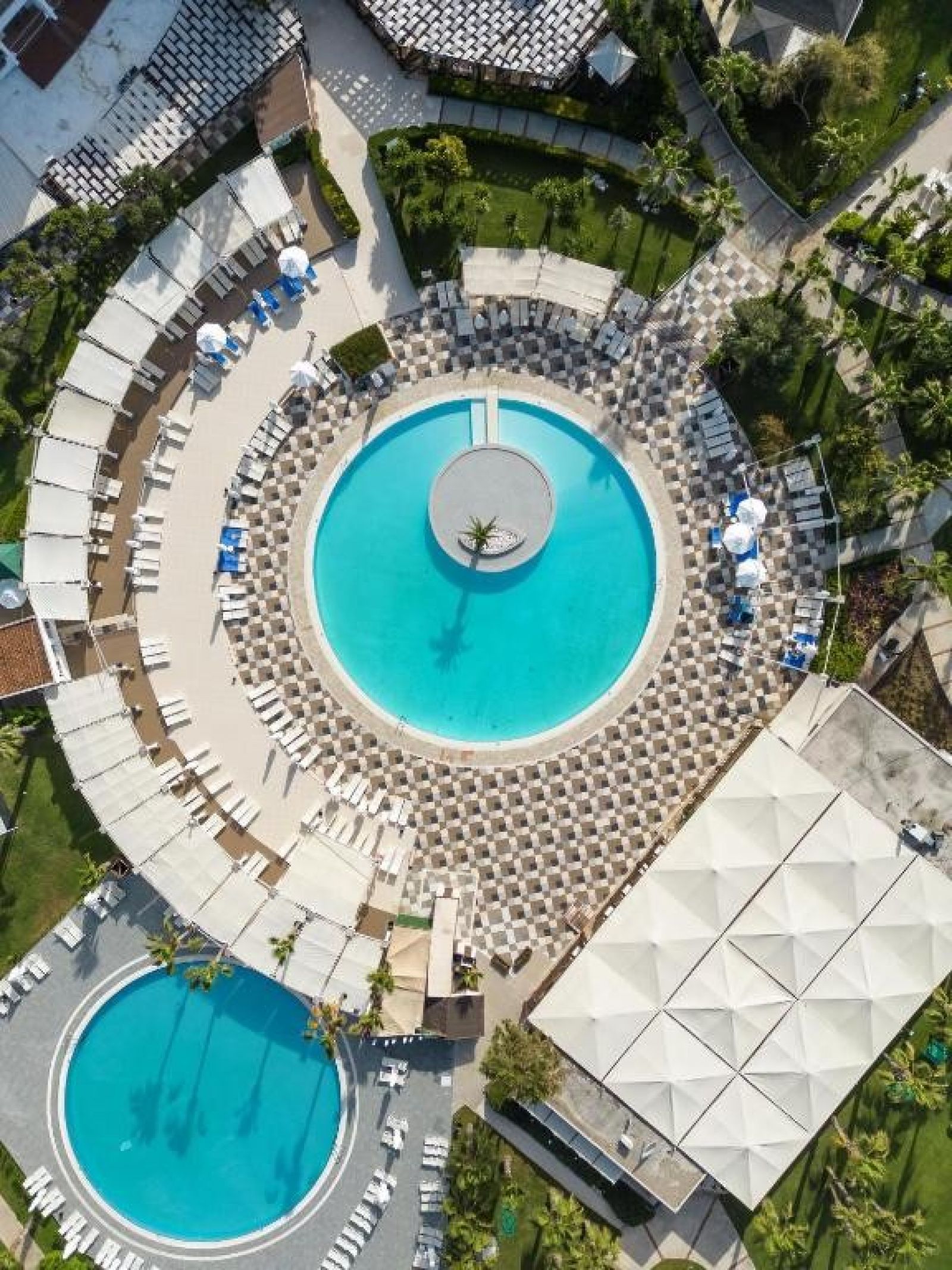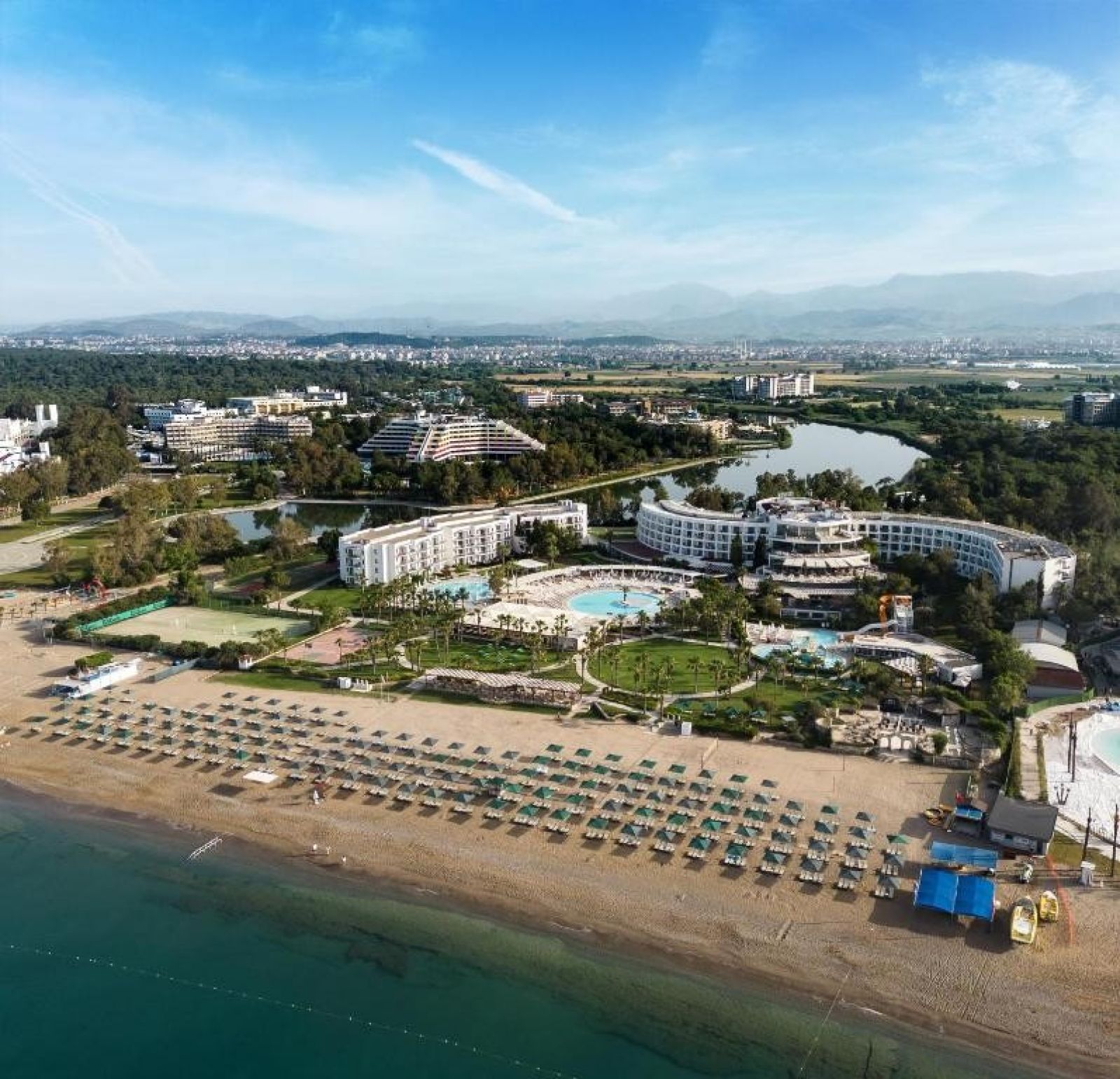 Основен ресторант (има диетична и вегетарианска храна), 3 ресторанта a la carte (италиански, турски, барбекю - с предварително записване, за седмичен престой 1 посещение на един от ресторантите по избор - безплатно), 4 бара, дискотека, 2 открити басейна, 1 закрит басейн (с подгряване през зимния период), 2 водни пързалки, Спа център, фризьорски салон, магазини, пералня и химическо чистене.