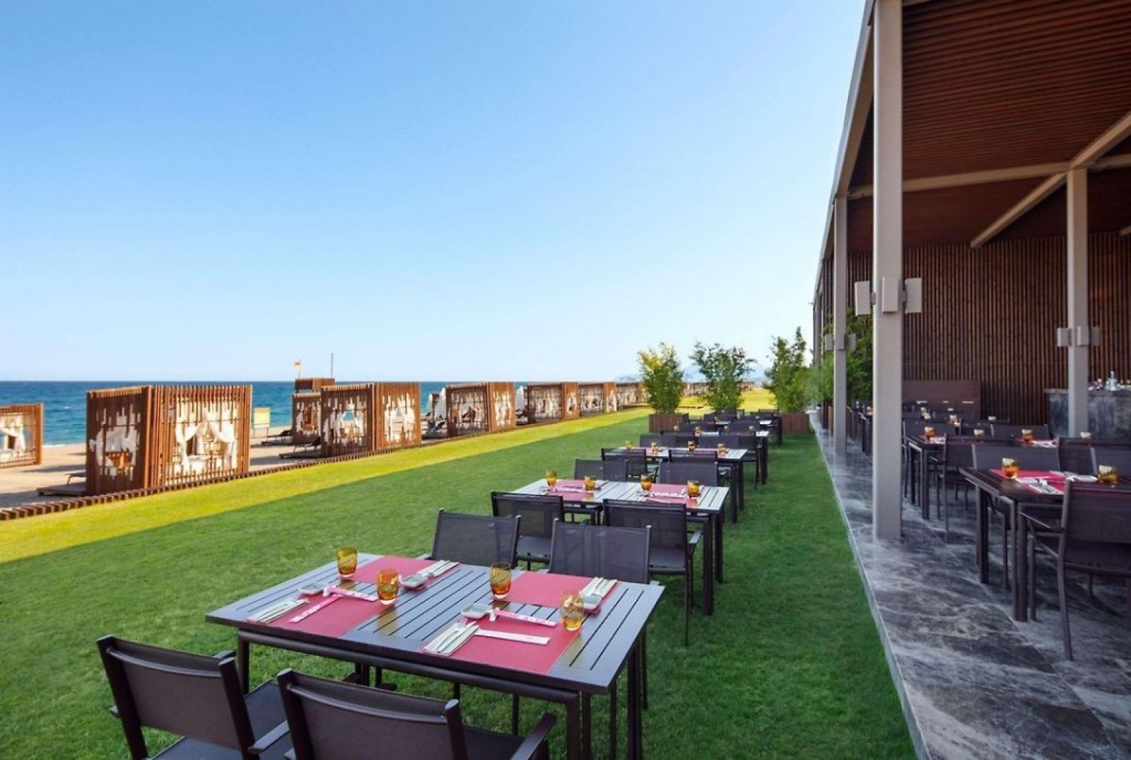 На територията: 4 открити басейна: 1250, 276, 500 (с морска вода) и 7574 m² (2 от тях с подгряване при метеорологични условия), 2 вътрешни басейна, 32 и 211 м² (отопляеми според метеорологичните условия), аквапарк, 7+6 пързалки, основен ресторант 24 часа, 3 а ла карт ресторанта: международен, турски, рибен (безплатно), 4 а ла карт ресторанта: месо, тепаняки, гастро, ресторант за здравословна храна (платен, при резервация), Ресторант "Емералд", 12 бара, сладкарски изделия, тенис кортове, търговски център
