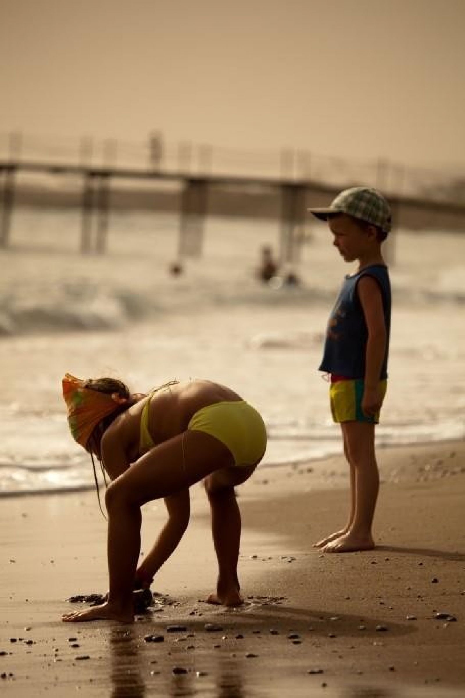 Собствен - пясъчно-каменист. Чадъри и шезлонги на плажа и при басейна - безплатно. Плажни кърпи - срещу депозит. Препоръчваме носенето на аква обувки.