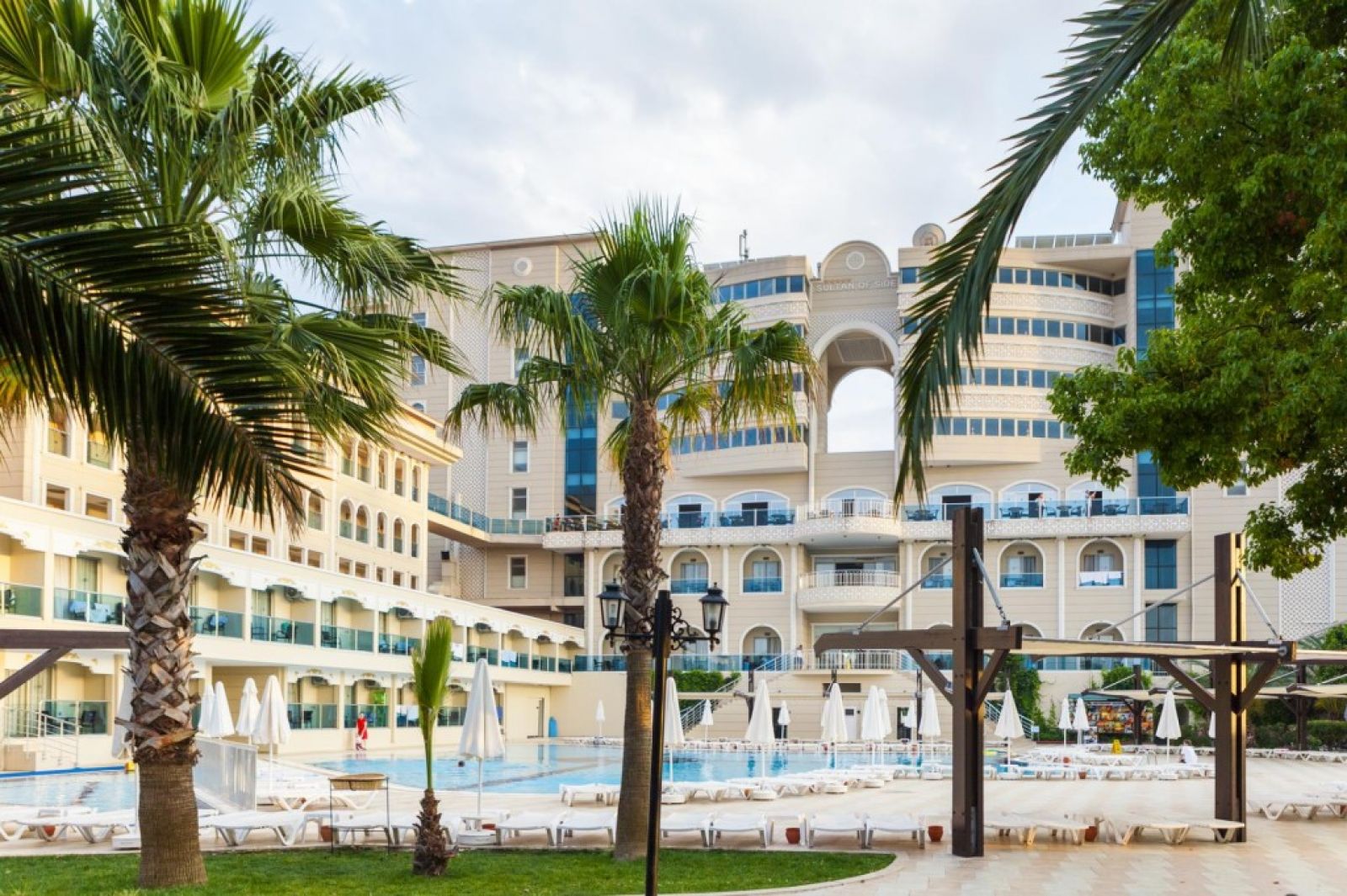 Разположение: Hotel Sultan of Side 5* се намира на 8 км от античният град Сиде, на 12 км от Манавгат, на 56 км от международно летище Анталия и на 250 м от собствената си плажна зона. Хотелът е открит през 2008 г. върху територия с обща площ от 20 000 м2. Послена реновация е извършена през 2019 г.